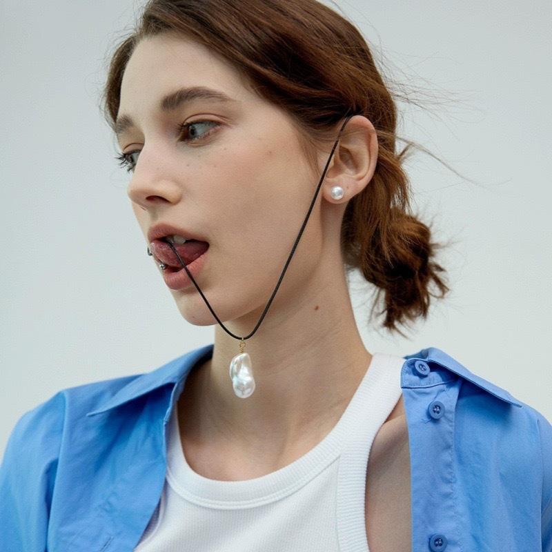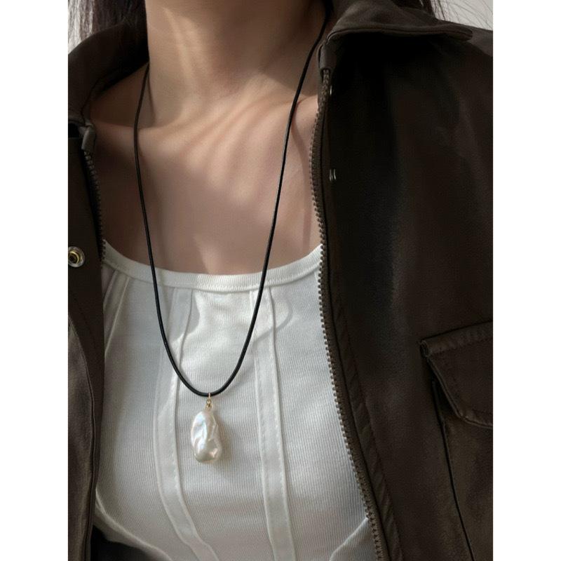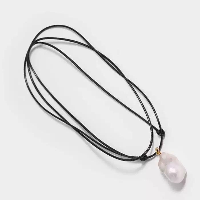 Collar de perlas barrocas naturales de agua dulce, cadena de lana negra de moda, informal, para hombres y mujeres, joyería personalizada que combina con todo.