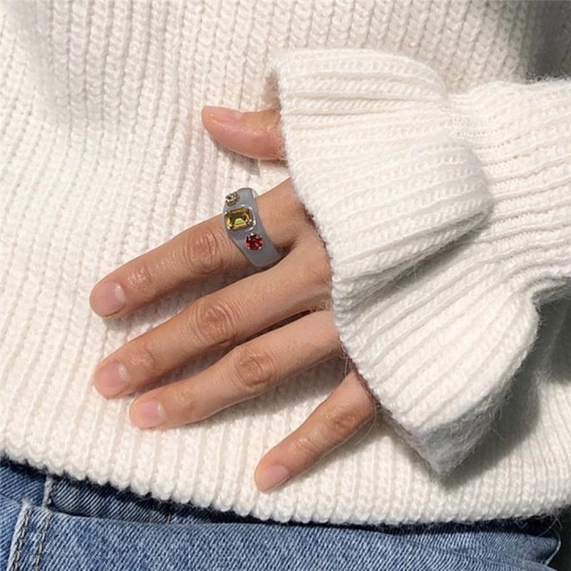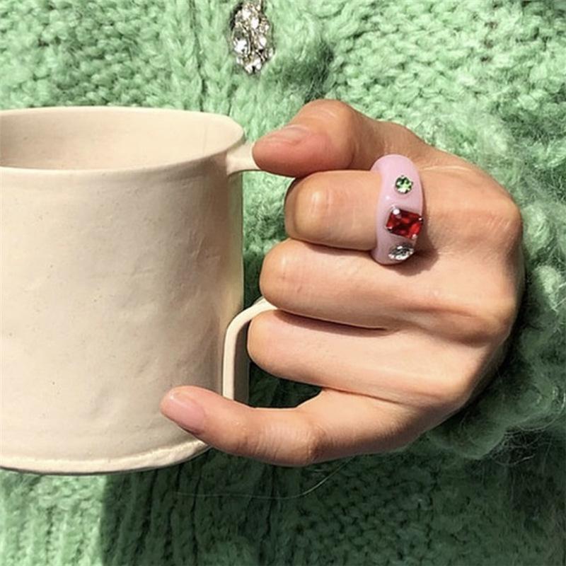 Anillo Coreano ins Diseño Nicho Sentido Anillo de Dedo de Comida Hecho a Mano Color Incrustado Anillo de Pedrería Anillo de Resina Acrílica para Mujer