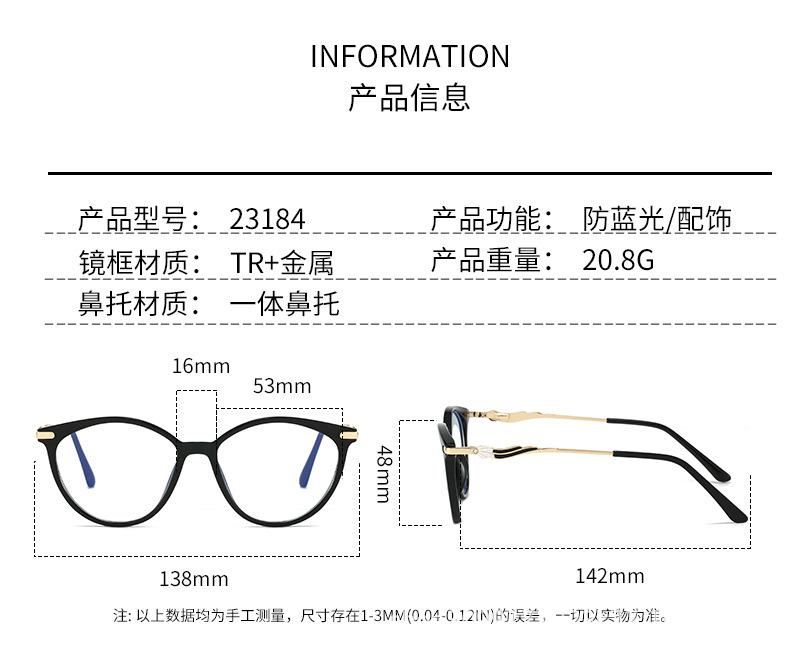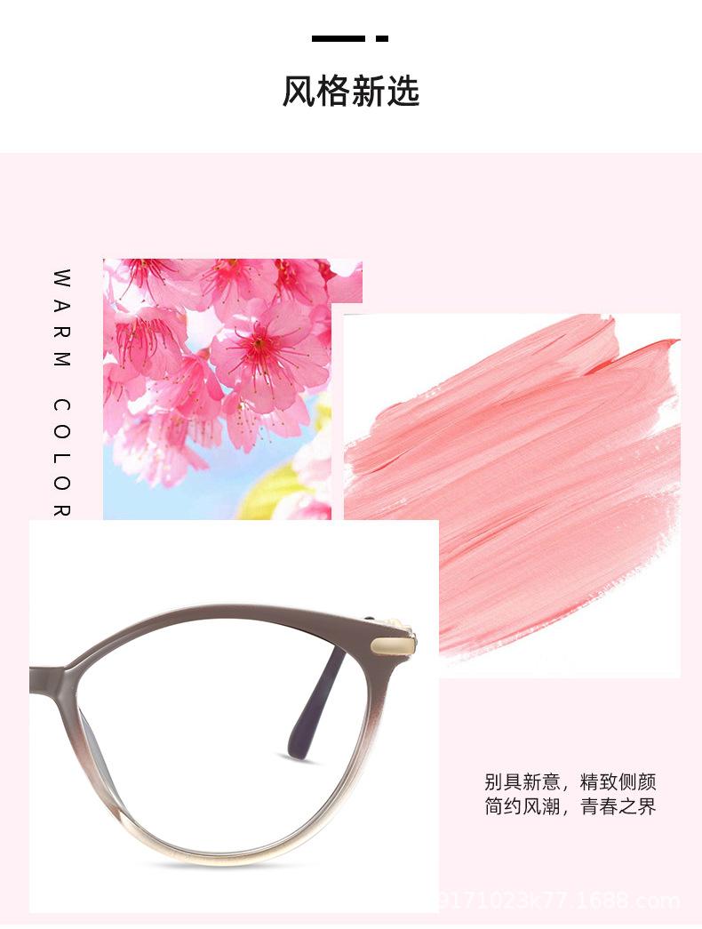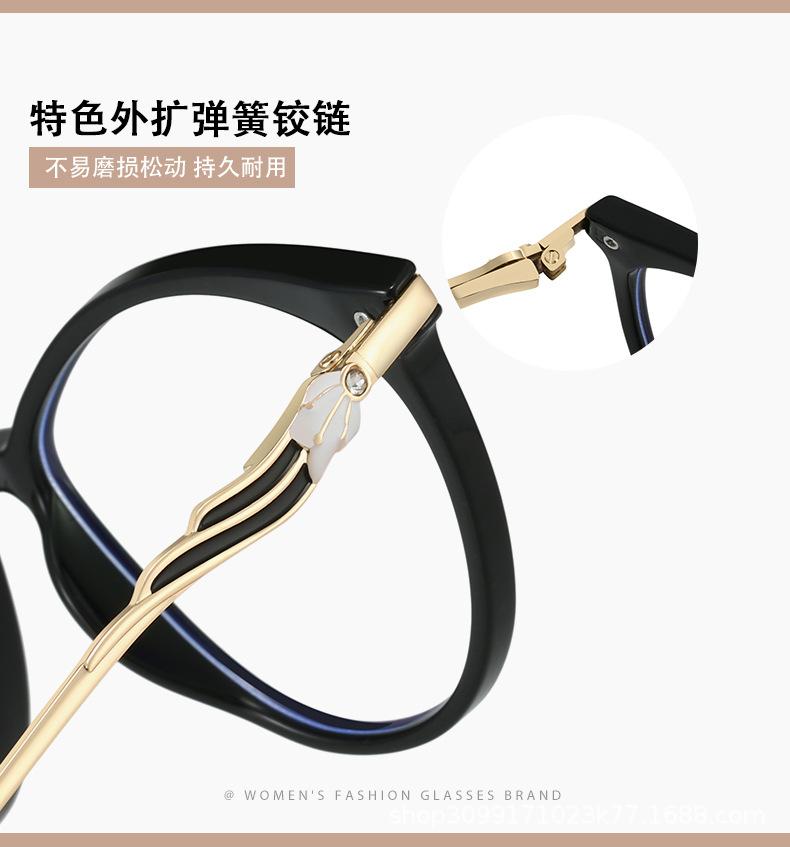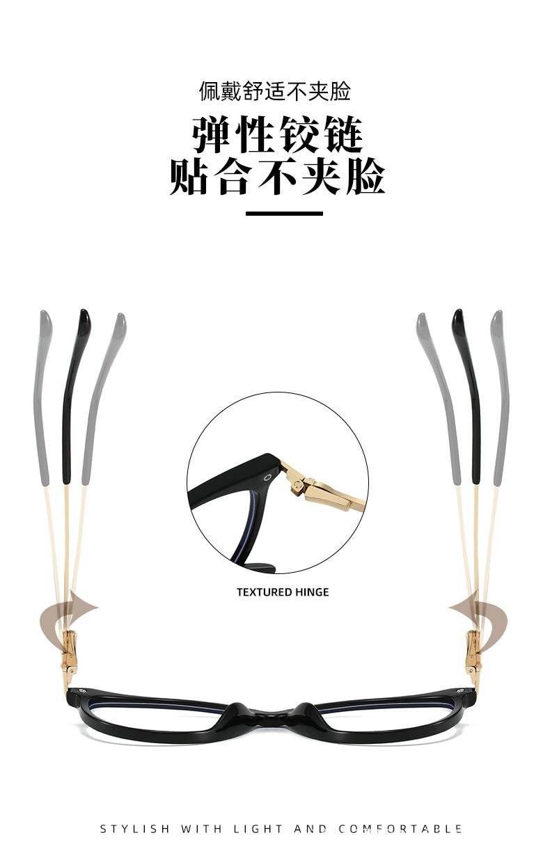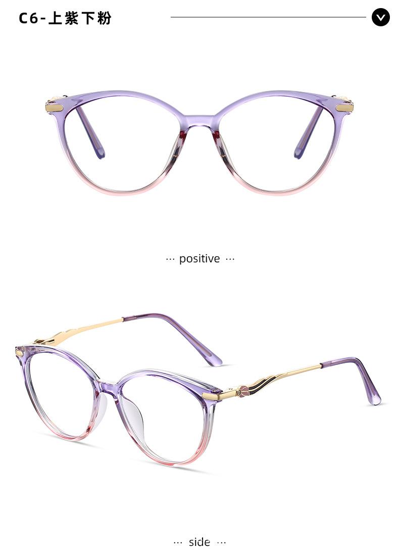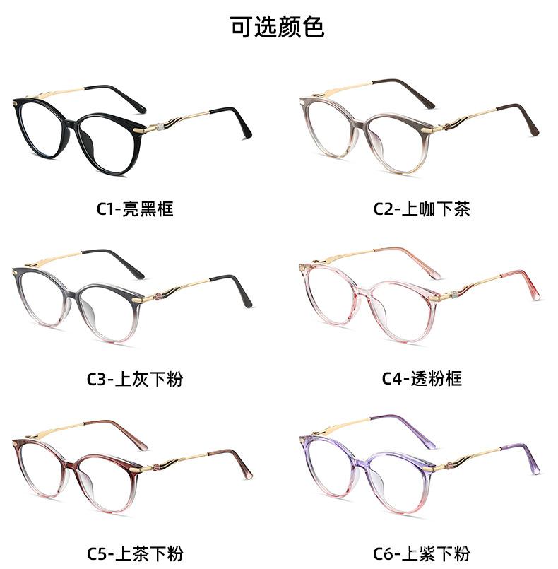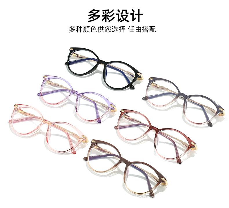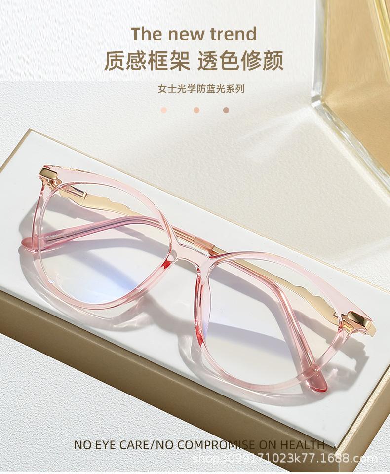 2024 nuevo armazón de gafas TR90 europeo y americano con luz anti-azul, tendencia de moda, gafas planas para damas, gafas para miopía