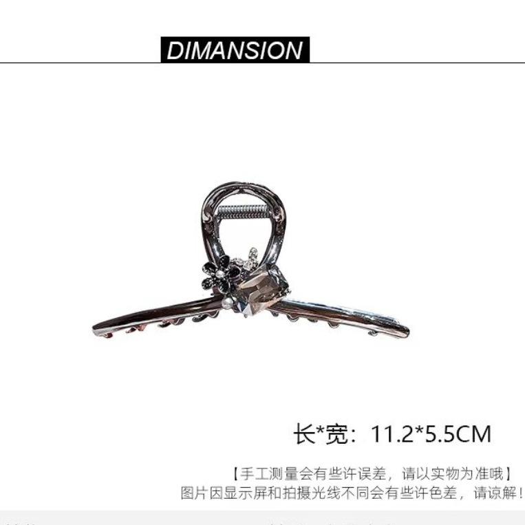 Diseño Sense Niche Clip de tiburón de diamantes de imitación negros Horquilla grande Sensación avanzada Clip de agarre de metal para la parte posterior Horquilla simple