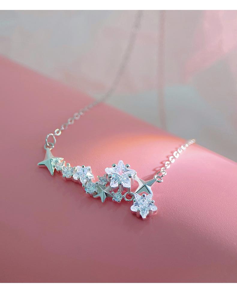 Collar Ganjia S925 de plata esterlina con forma de estrella y flor, estilo fresco de verano para mujer, combinable con todo, recién llegado, collar de cadena de clavícula.