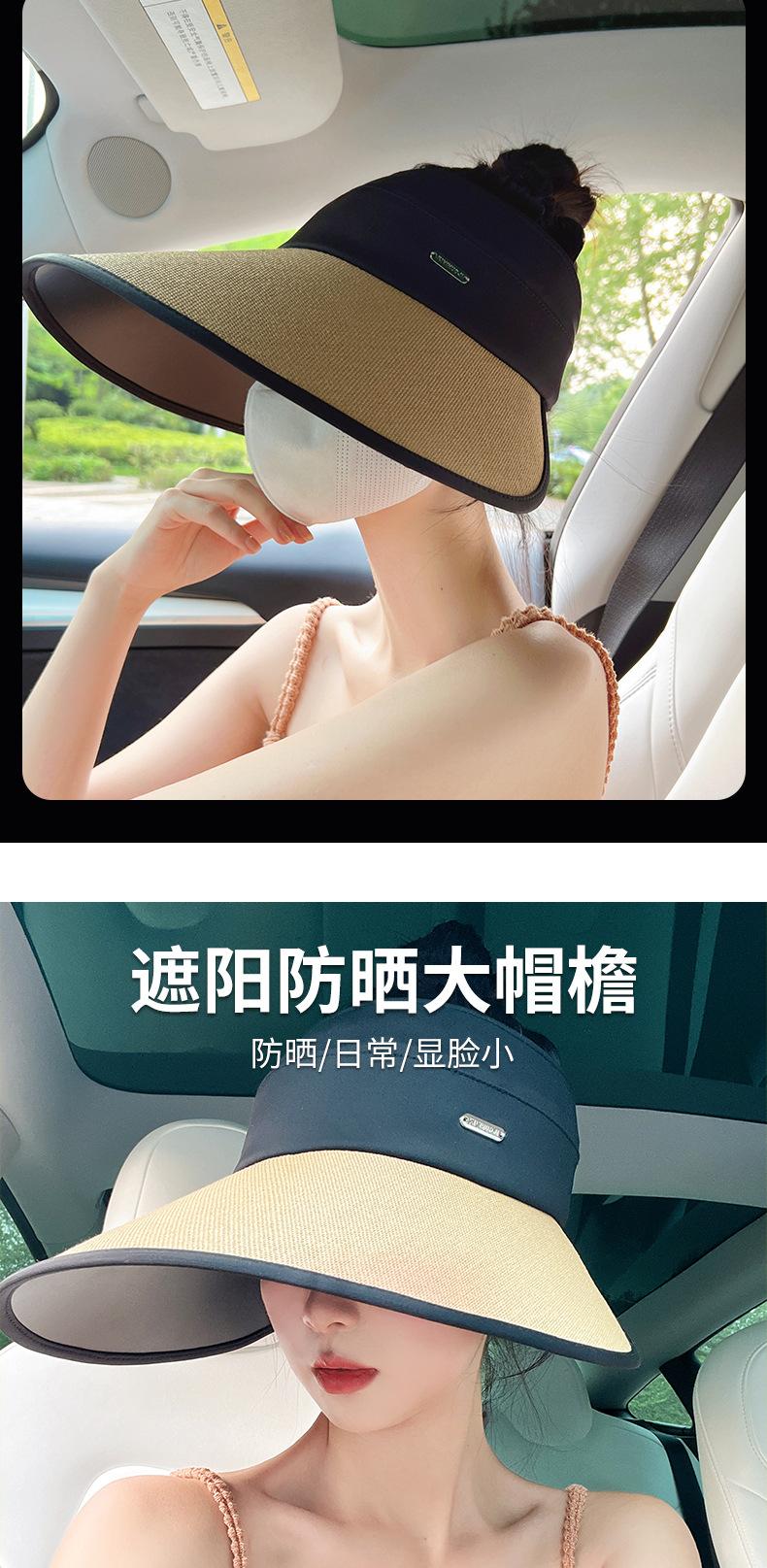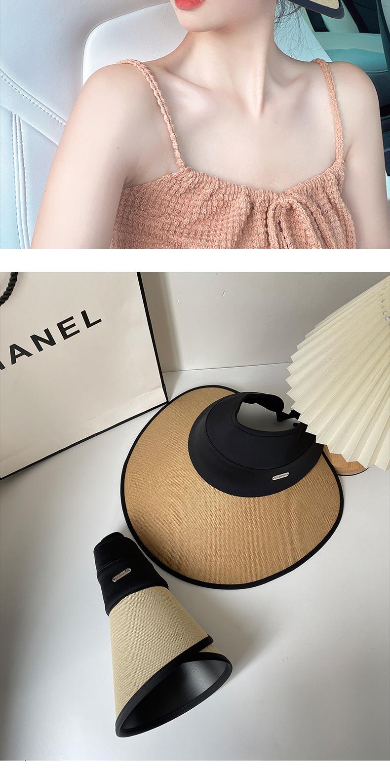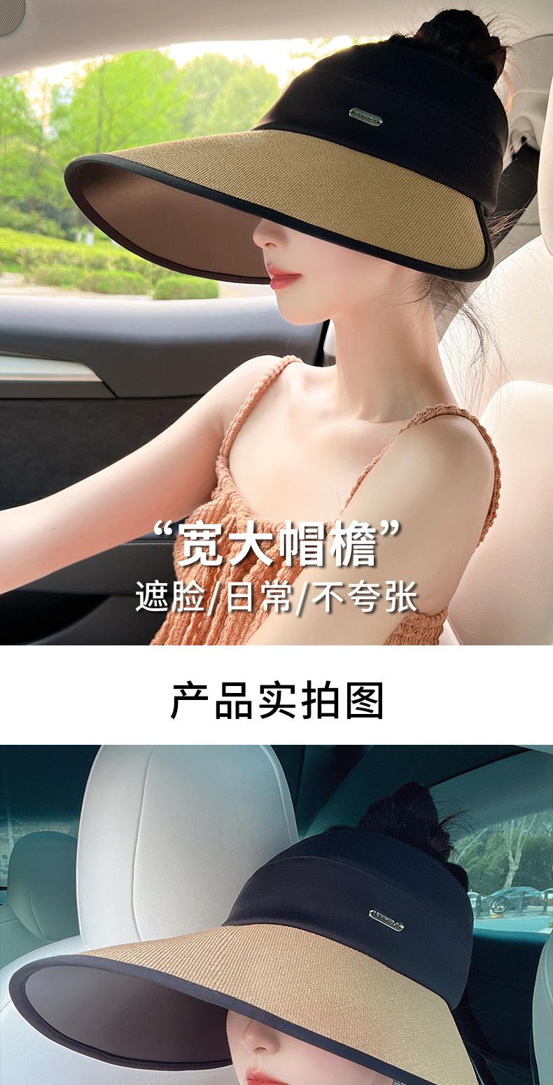Sombrero de paja para mujer en verano con ala grande para cubrir la cara y protección solar sombrero para el sol para viajar con pegamento negro para prevenir los rayos UV