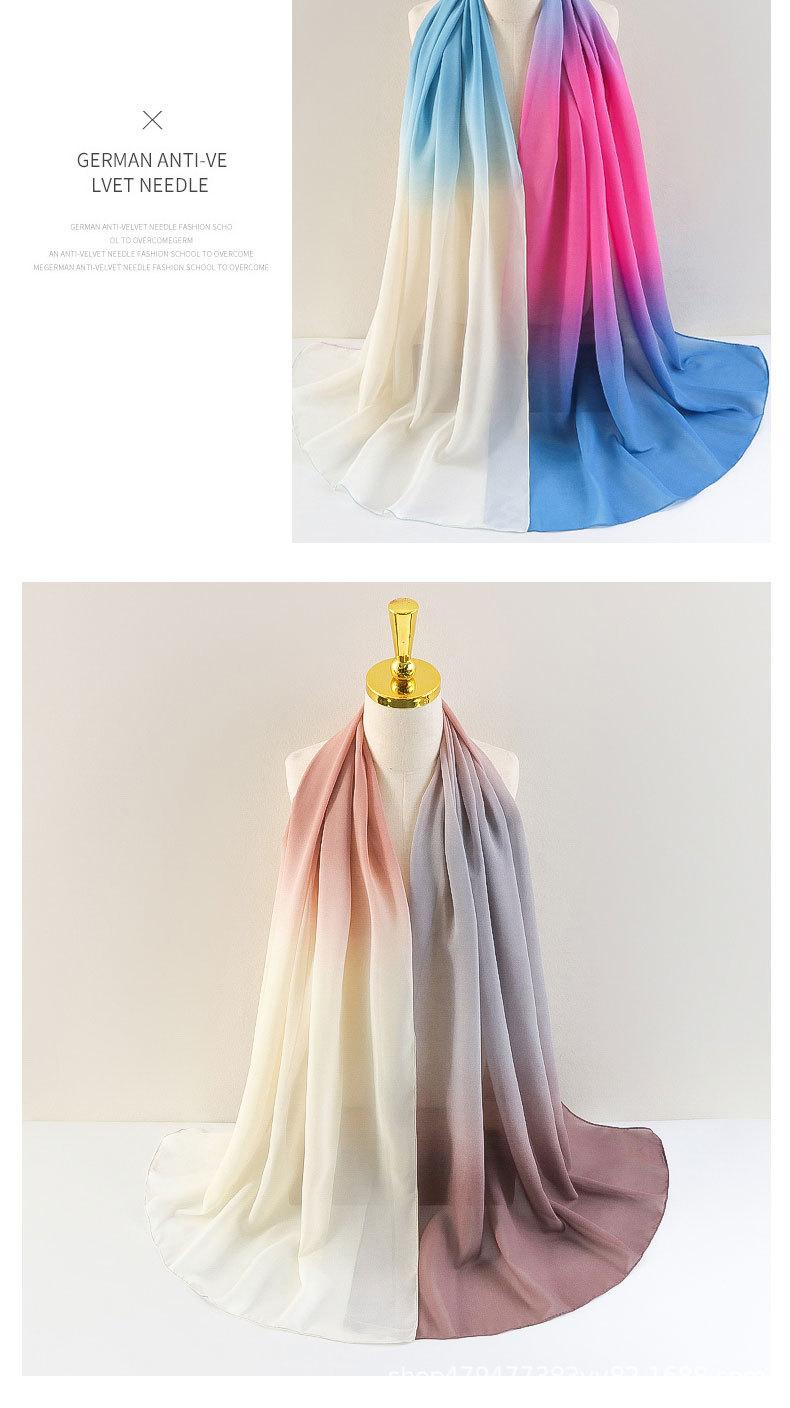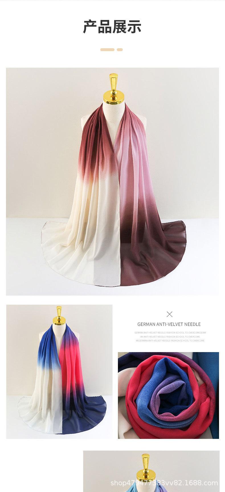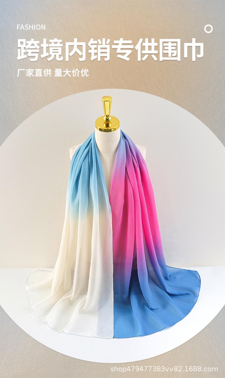 Nueva Bufanda de Seda Chifón 75D Bufanda Larga de Primavera Color Degradado Versátil Bufanda de Gasa Primavera y Otoño Bufanda de Yoga Fabricante Femenino Venta al por Mayor