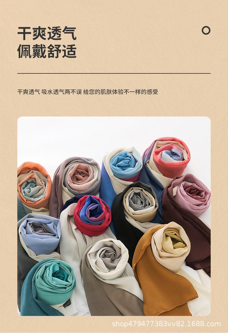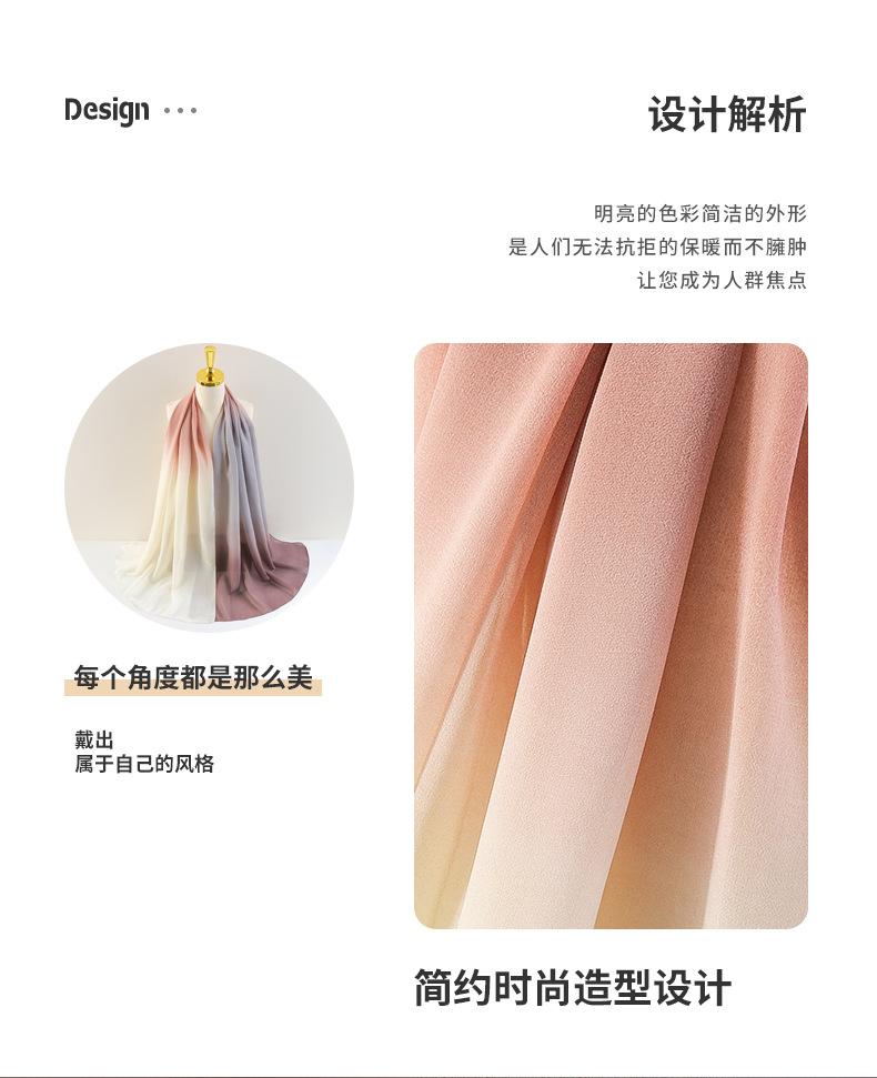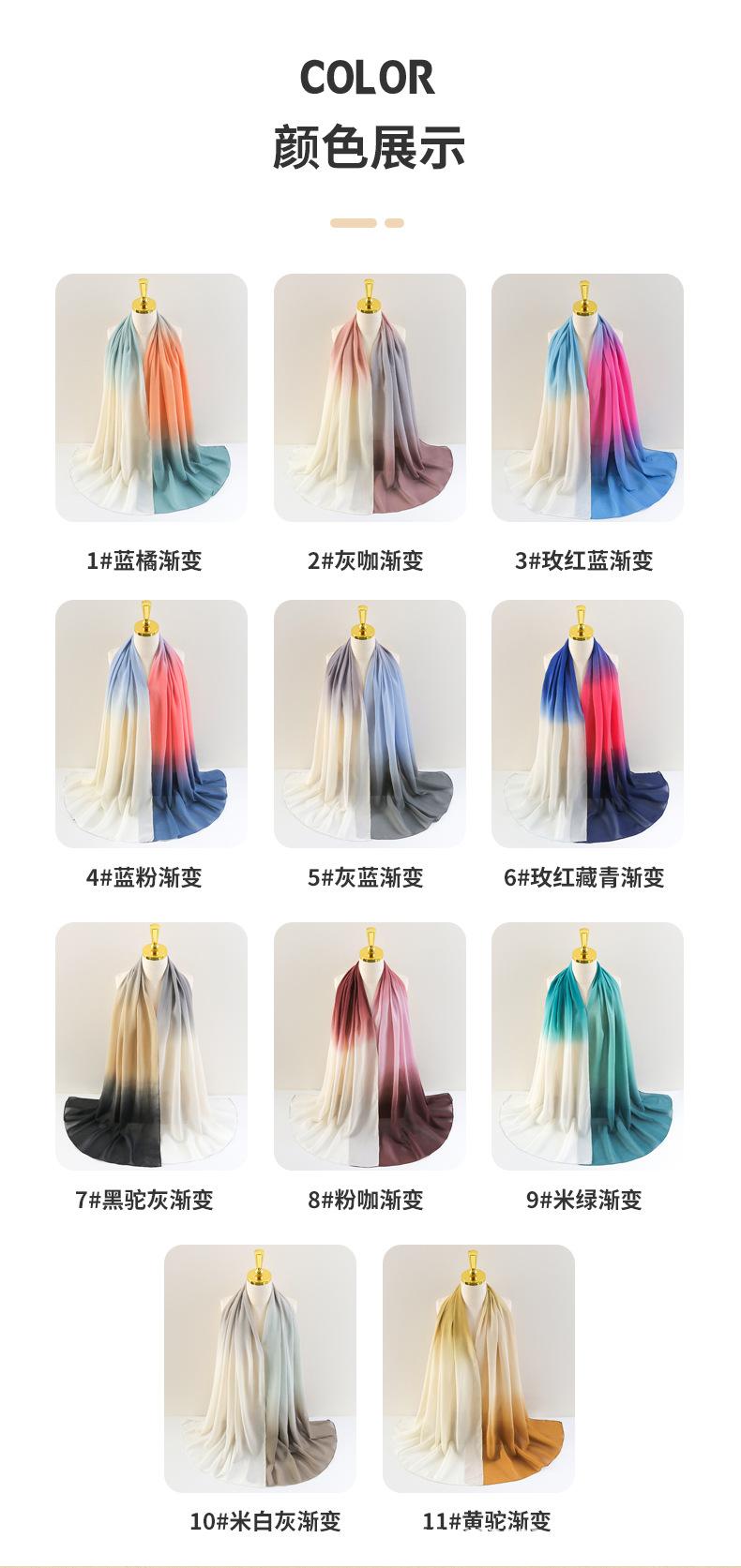 Nueva Bufanda de Seda Chifón 75D Bufanda Larga de Primavera Color Degradado Versátil Bufanda de Gasa Primavera y Otoño Bufanda de Yoga Fabricante Femenino Venta al por Mayor