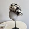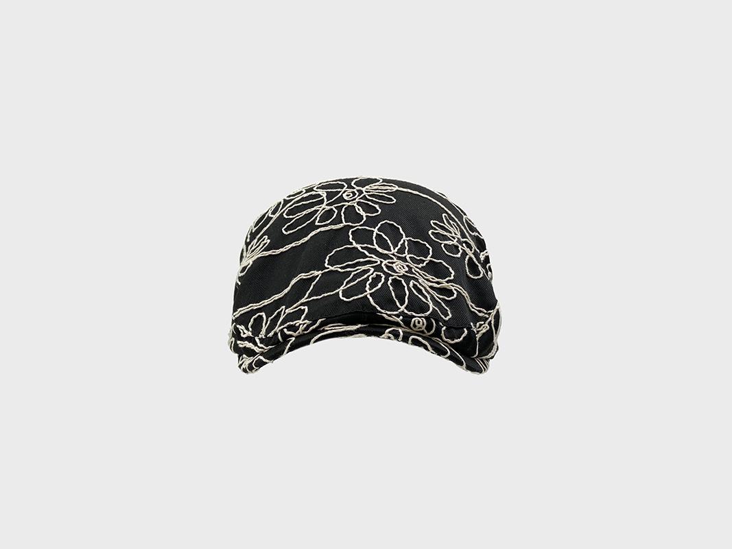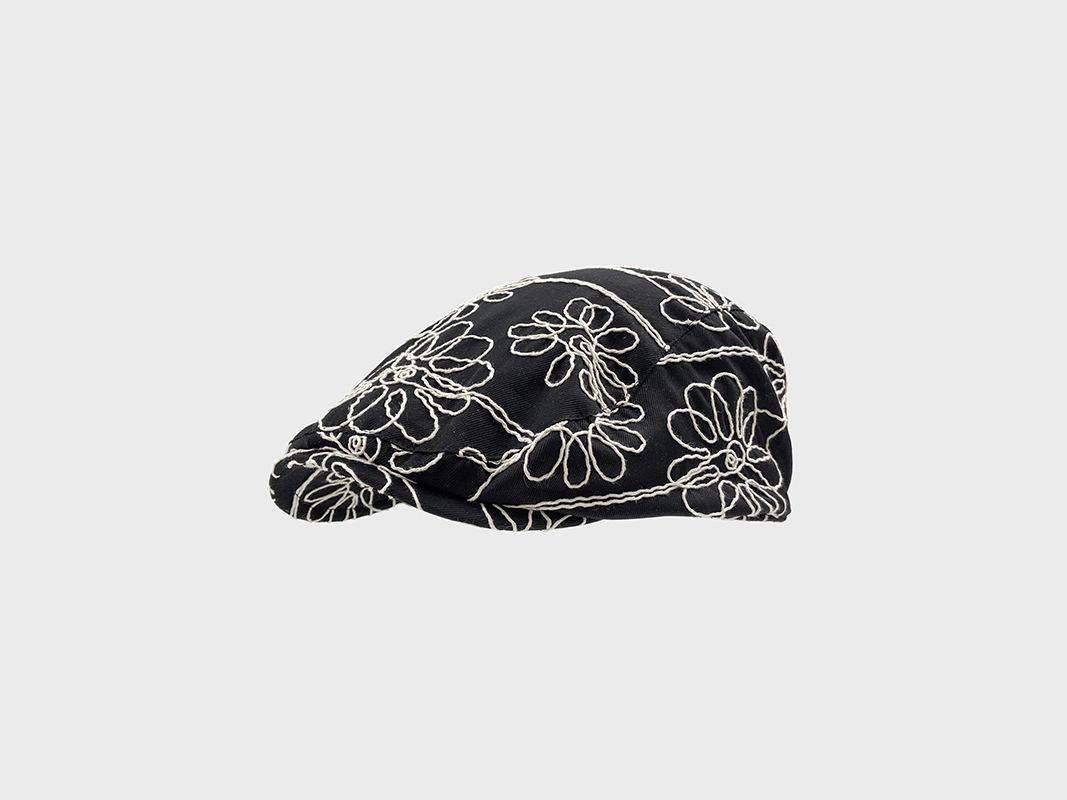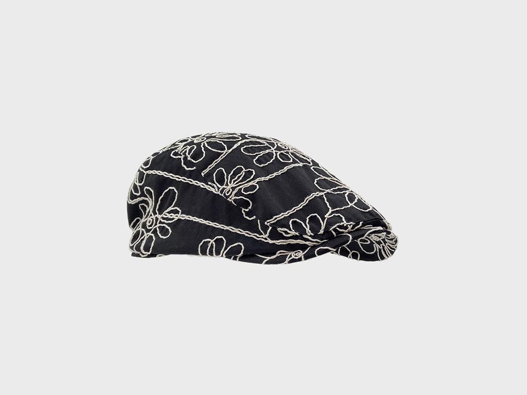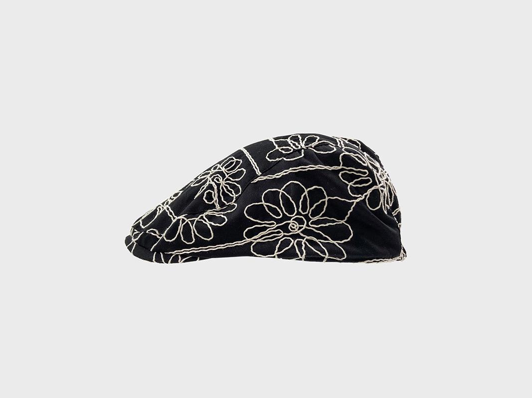 Sombrero negro con bordado de flores vintage para mujer, boina pequeña de verano, estilo japonés, sombrero de pintor de cabeza grande, moderno