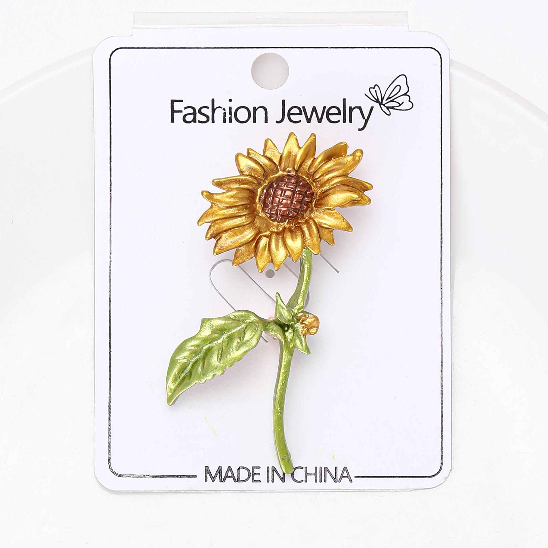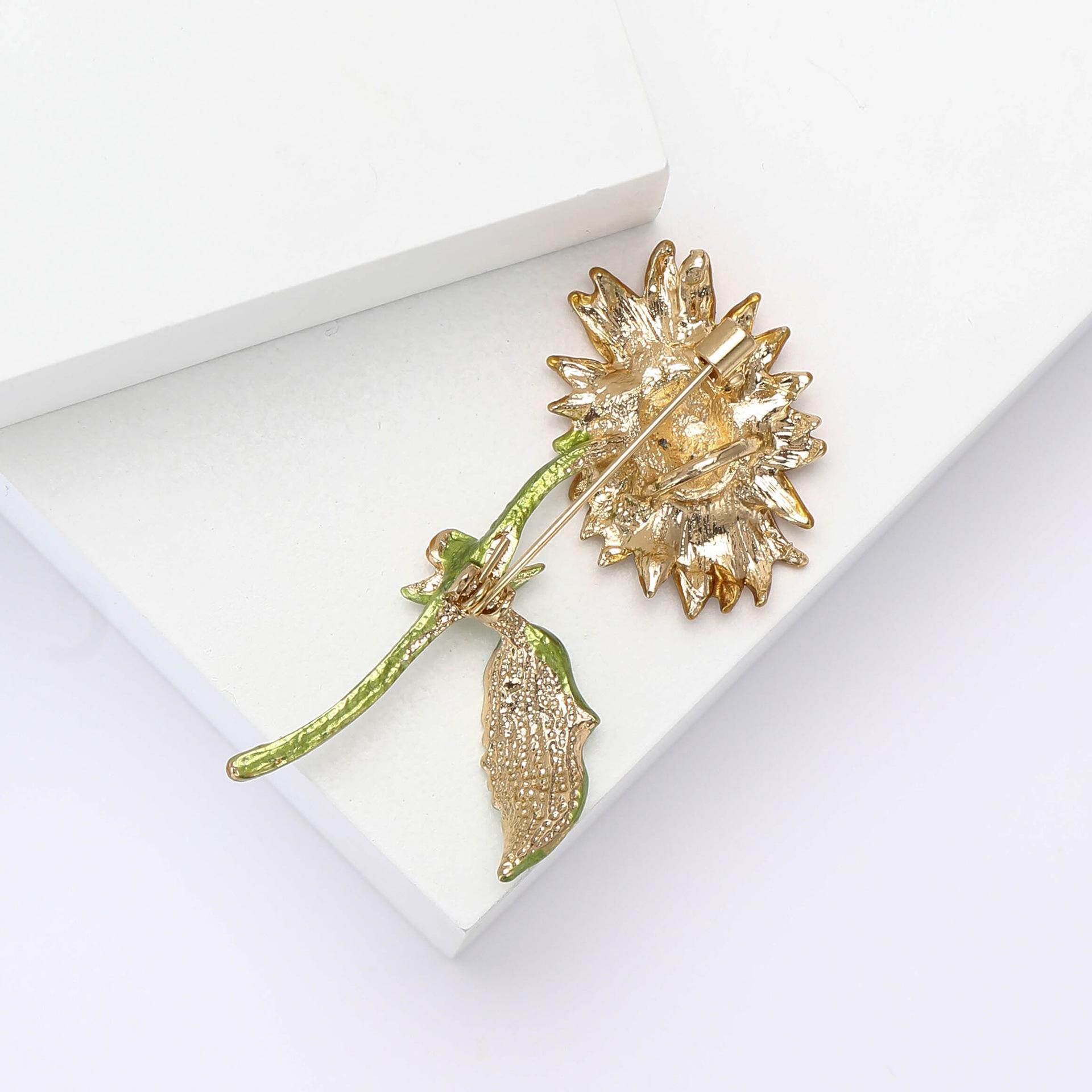 Broche de girasol esmaltado de aleación de estilo coreano, sencillo y elegante, con diseño de sol, para mujer, con ramillete y alfiler de joyería.
