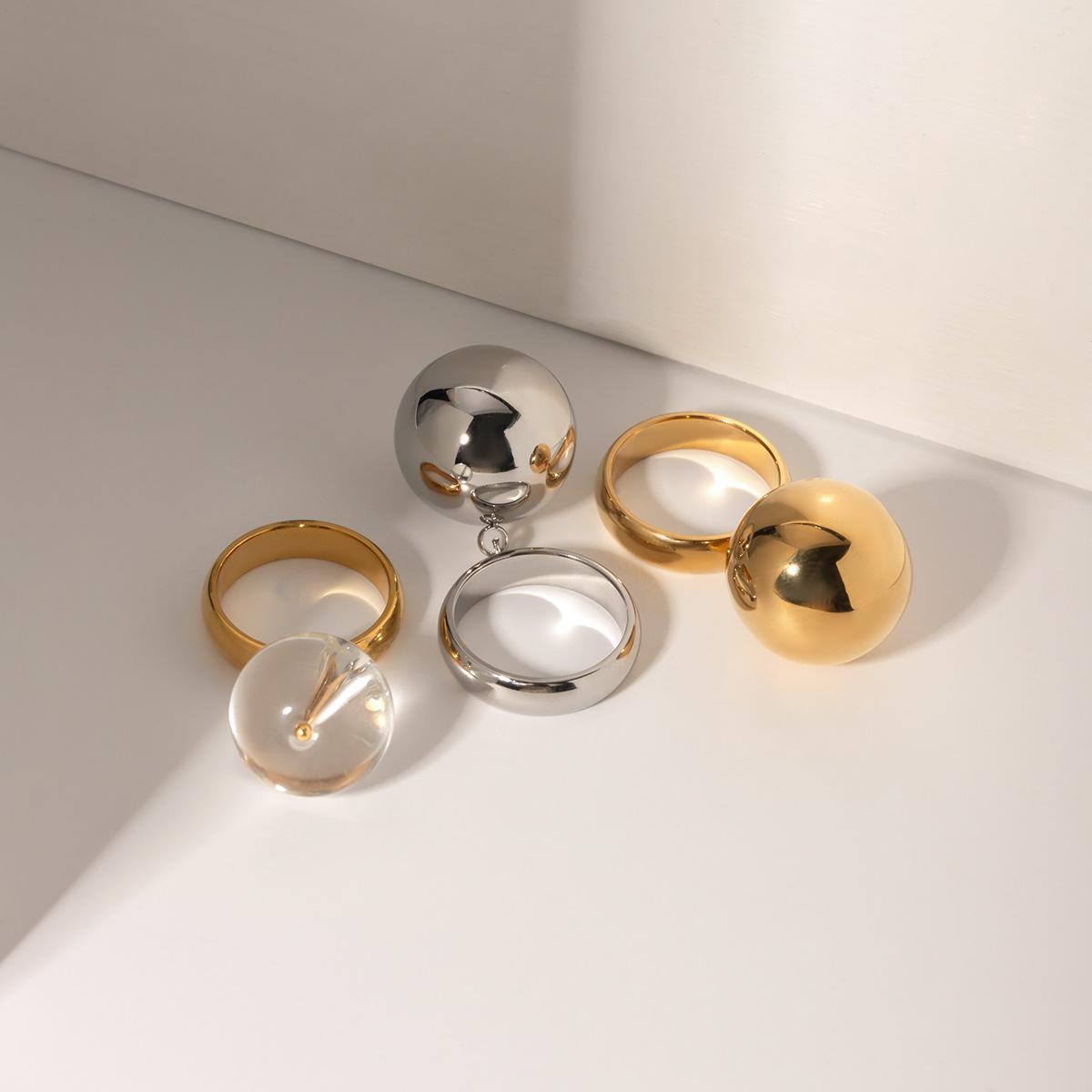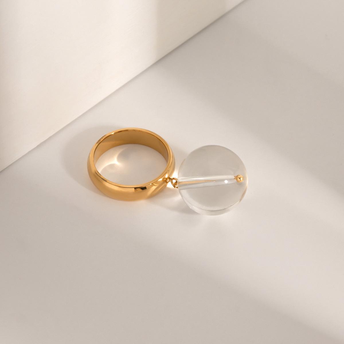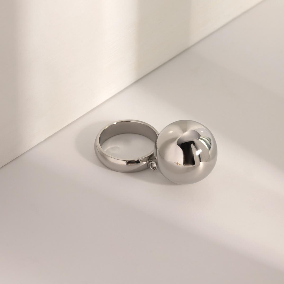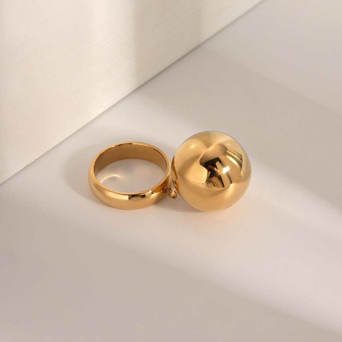 Anillo colgante de bola de acero inoxidable de oro de 18 quilates con personalidad sencilla y exagerada para mujer, estilo europeo y americano, venta al por mayor