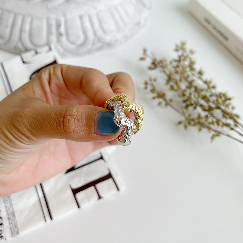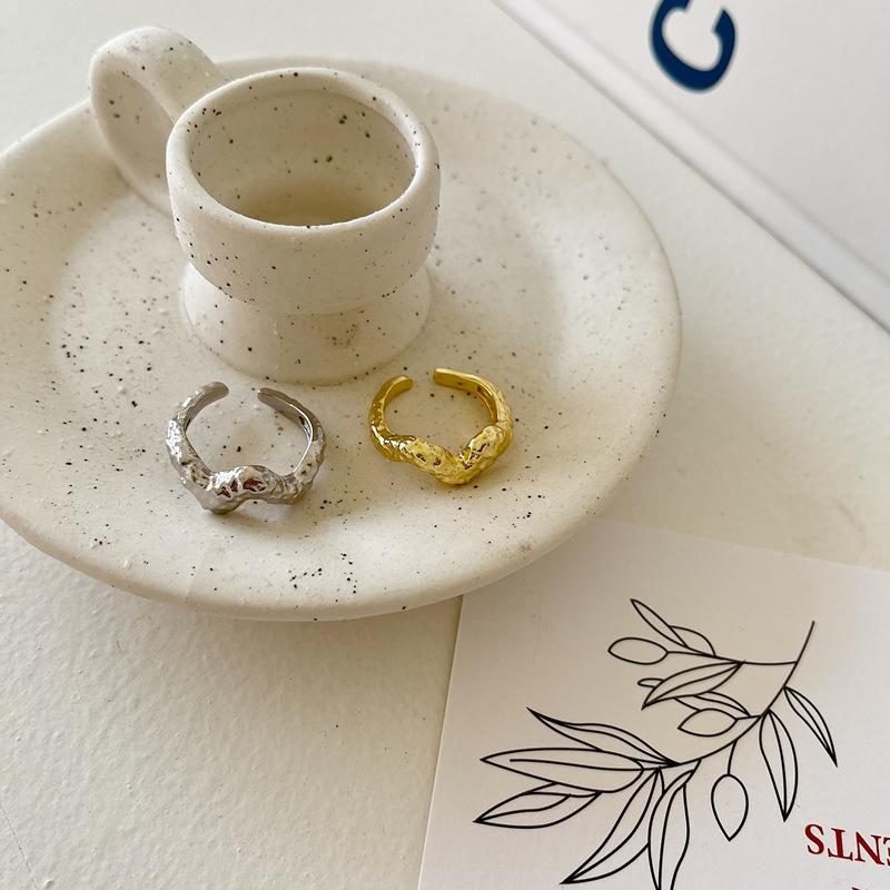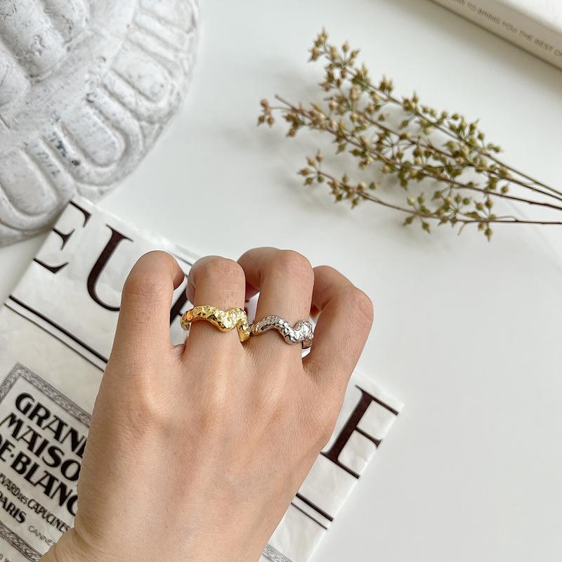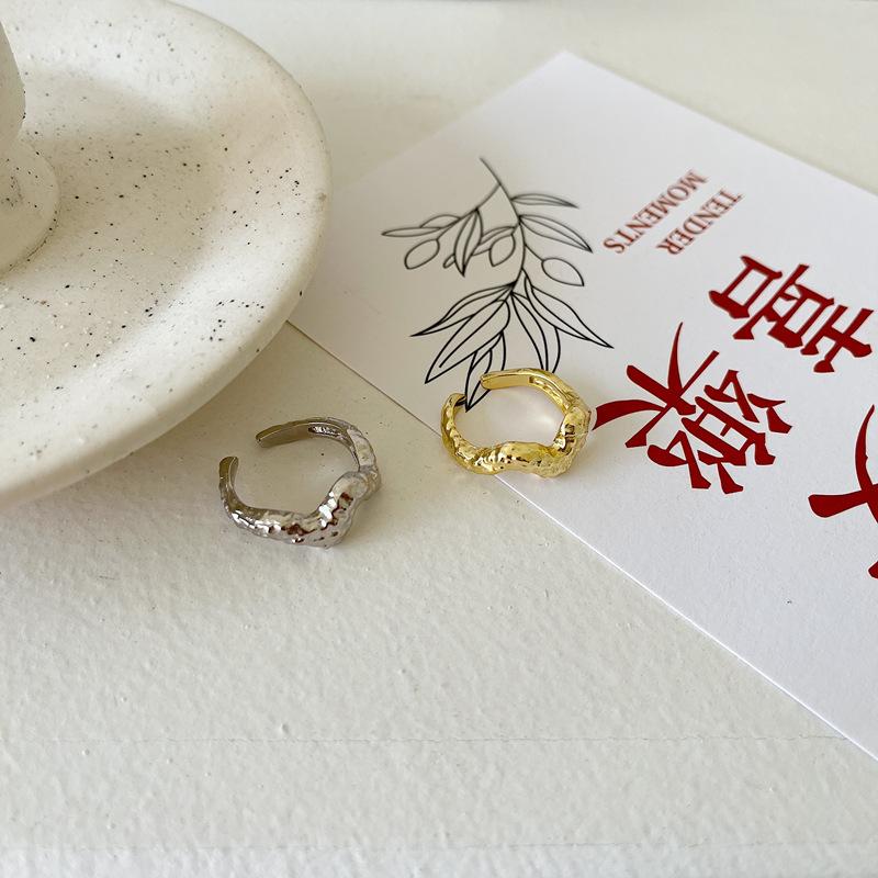 Anillo de plata S925 con textura plisada irregular de alta gama, estilo INS, versión coreana de Kassett para mujer