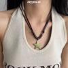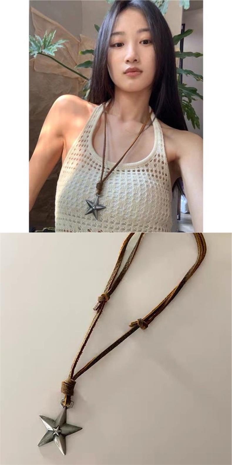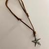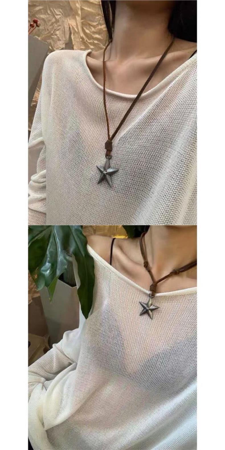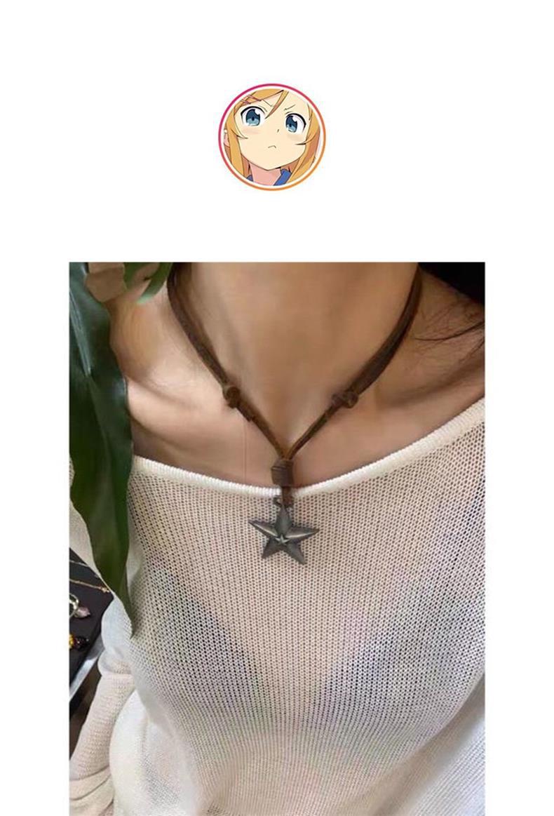 Collar punk con colgante de estrella de personalidad ajustable, de aleación de piel de vaca, de plata, con estrella de cinco puntas, collar largo, cadena para suéter