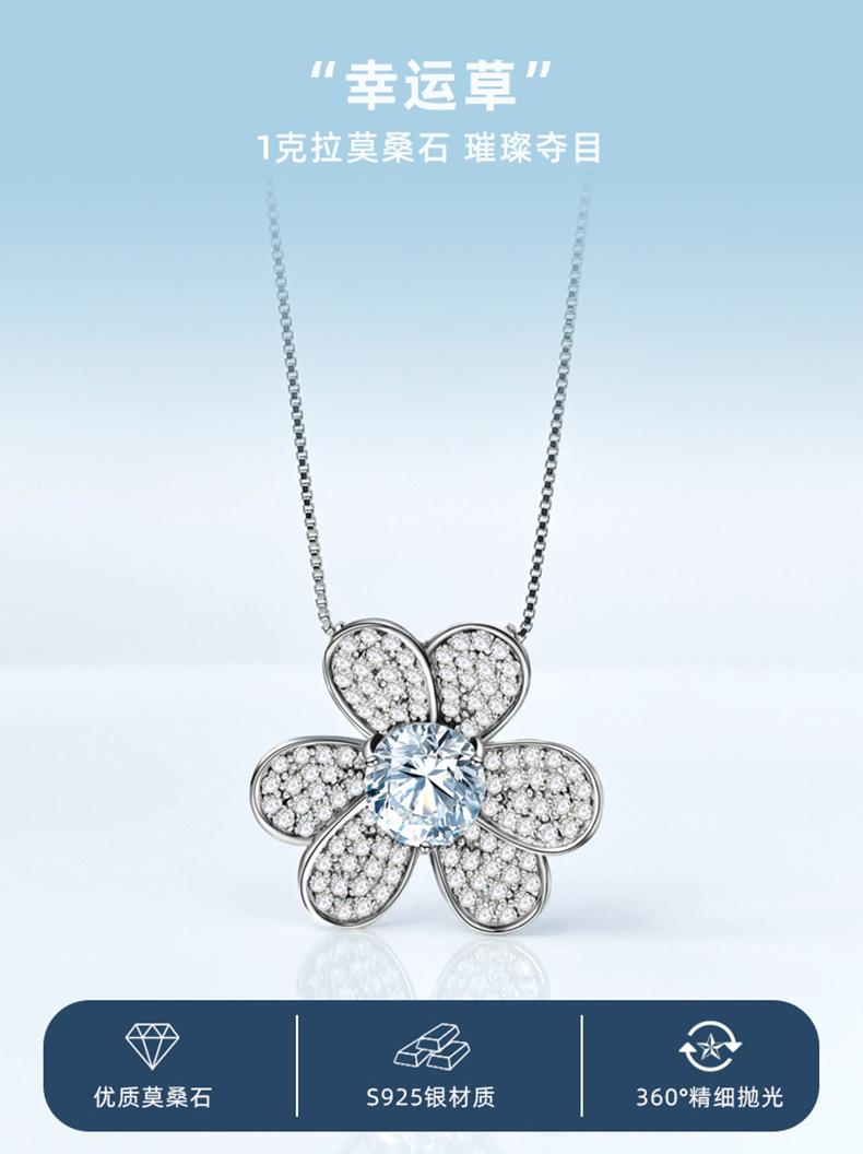 Collar de moissanita de plata esterlina 925 de alta calidad, colgante de hierba de la suerte para mujer, cadena de clavícula de lujo a la moda, joyería de plata al por mayor