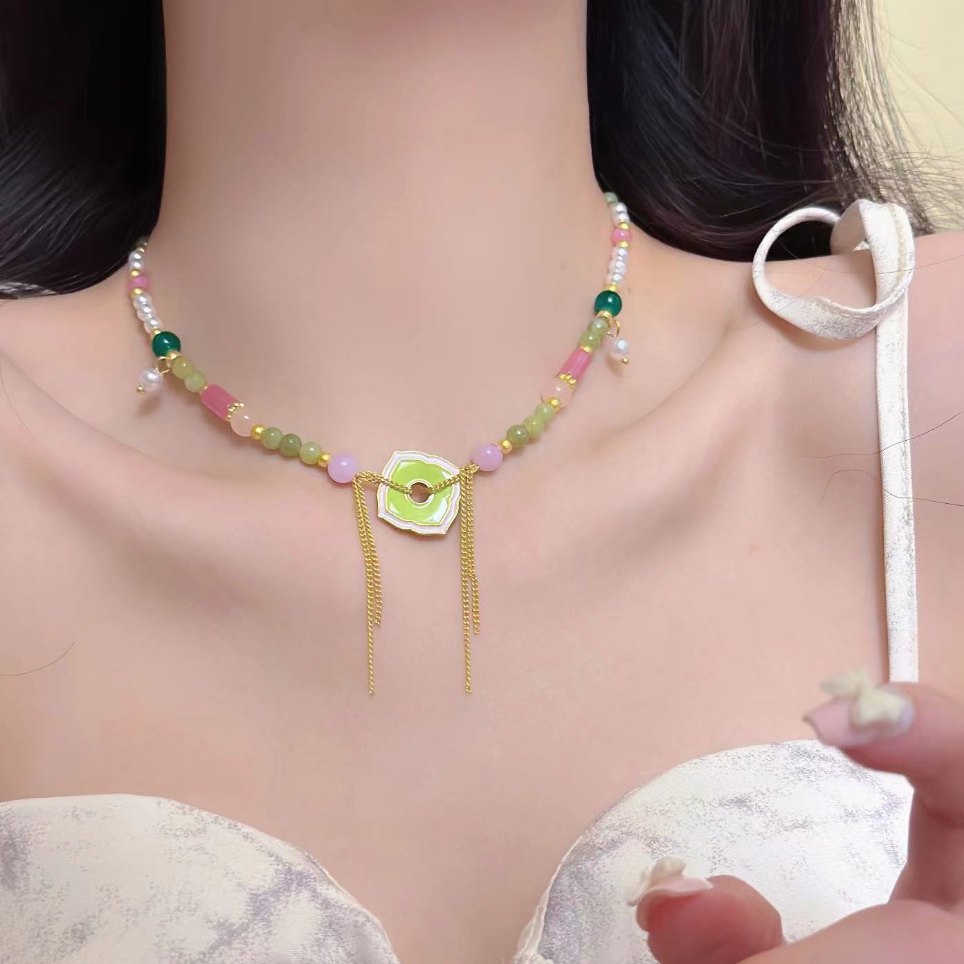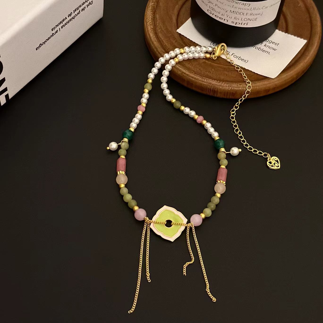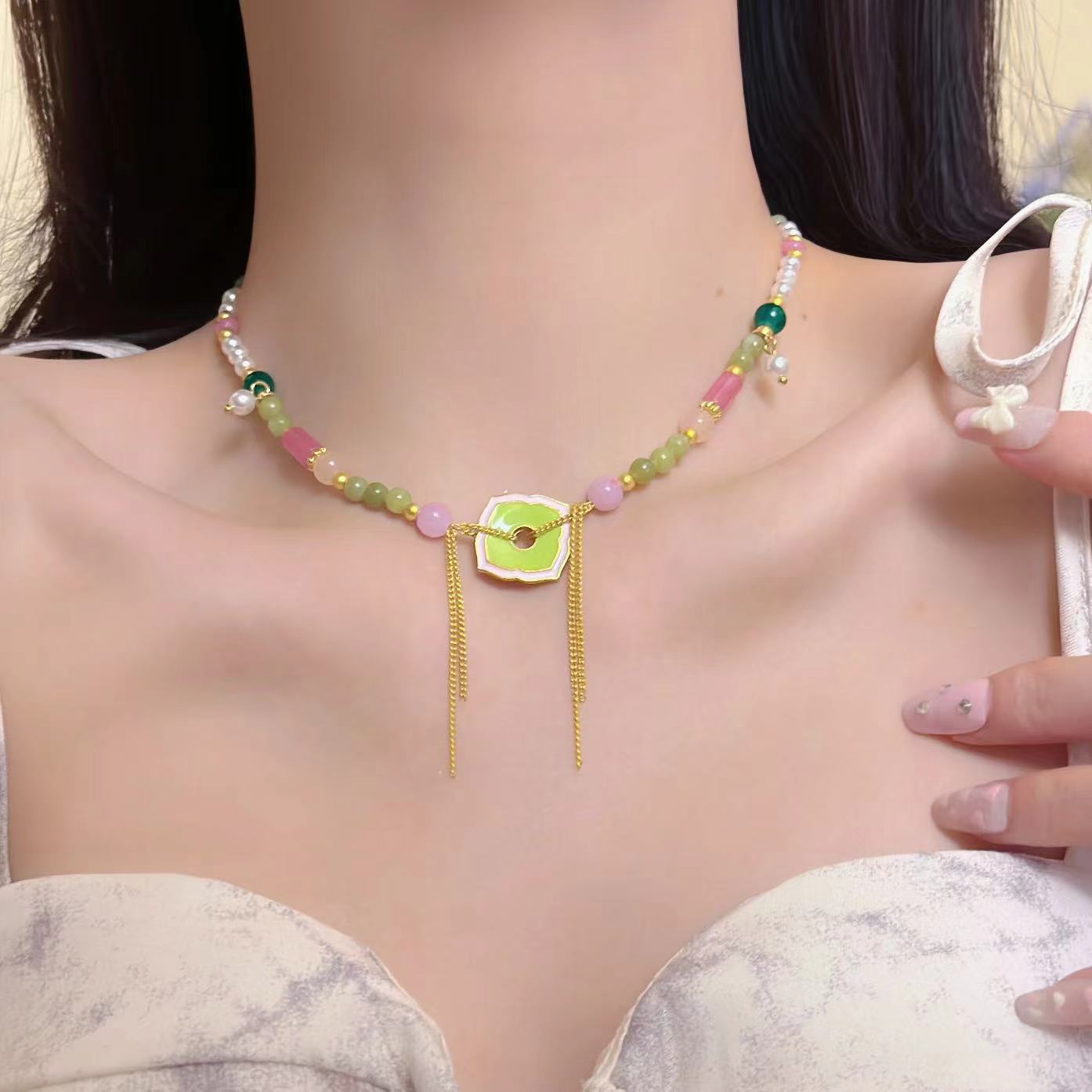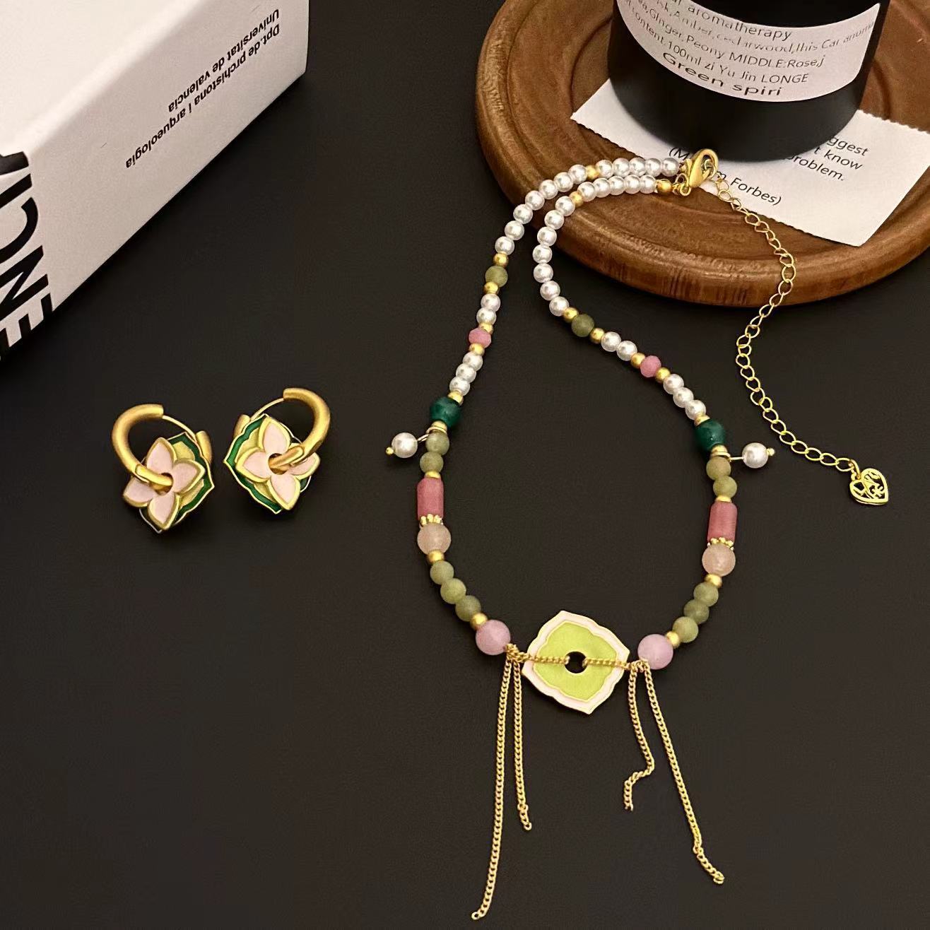 Nuevo collar de cuentas con gotas de aceite de color chino para mujer, combina con todo, de alta gama, de diseño vintage de moda y collar y pendientes modernos.