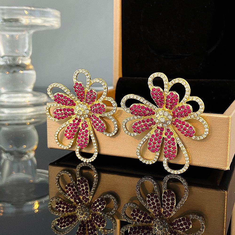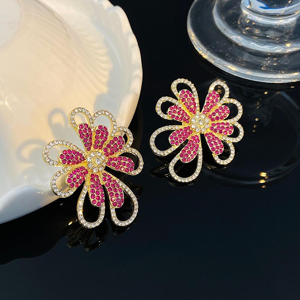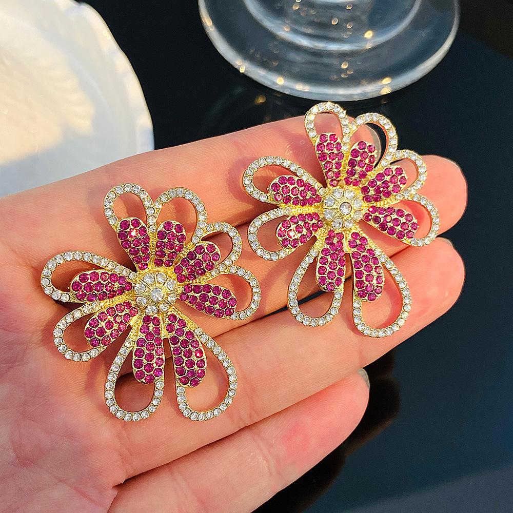 Pendientes de flores súper brillantes con microincrustaciones de diamantes de moda de lujo ligero europeo y americano, pendientes de flores exageradas tridimensionales, pendientes de temperamento al por mayor