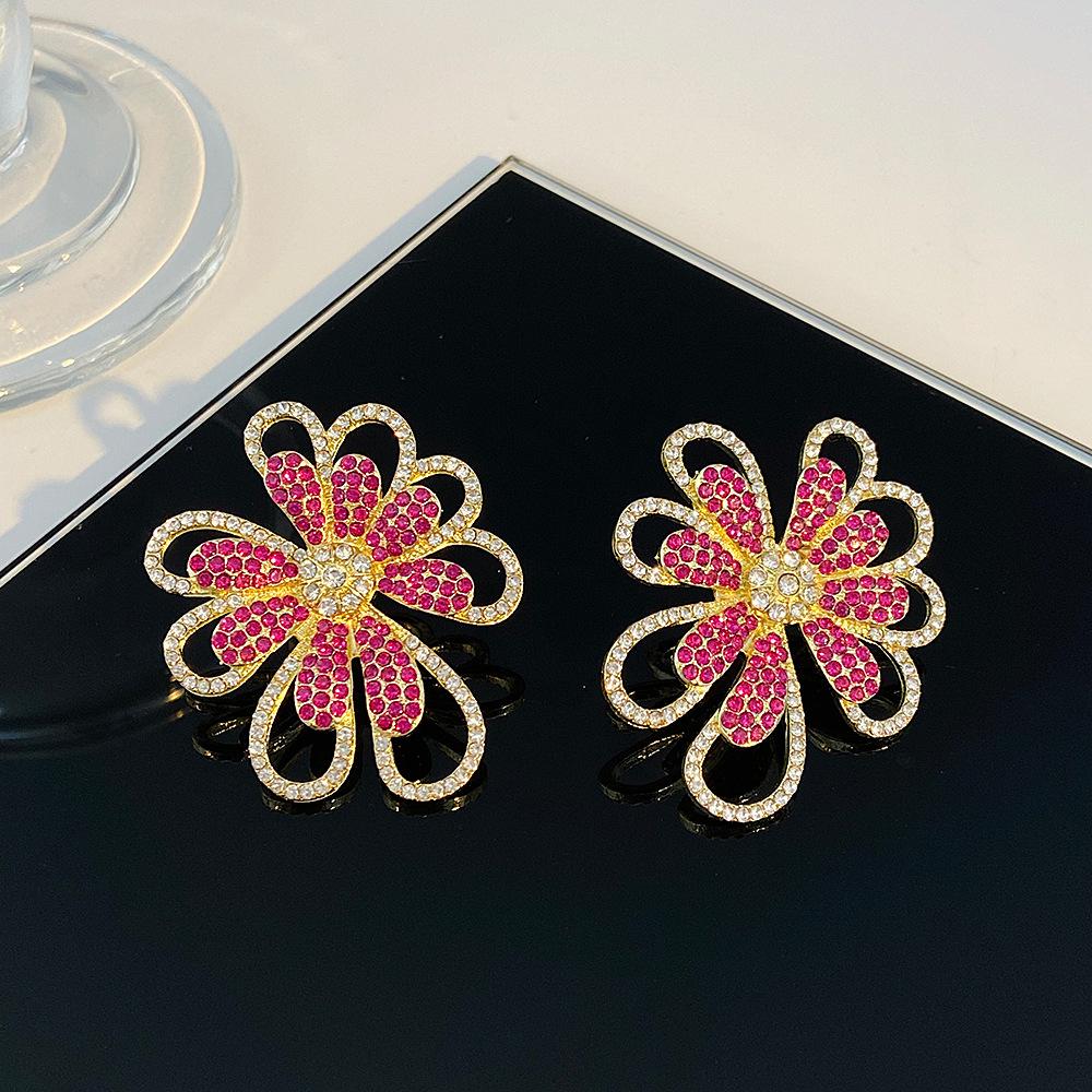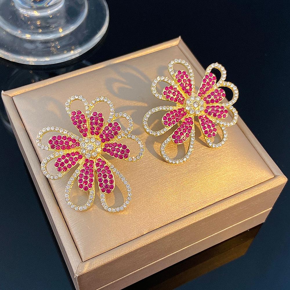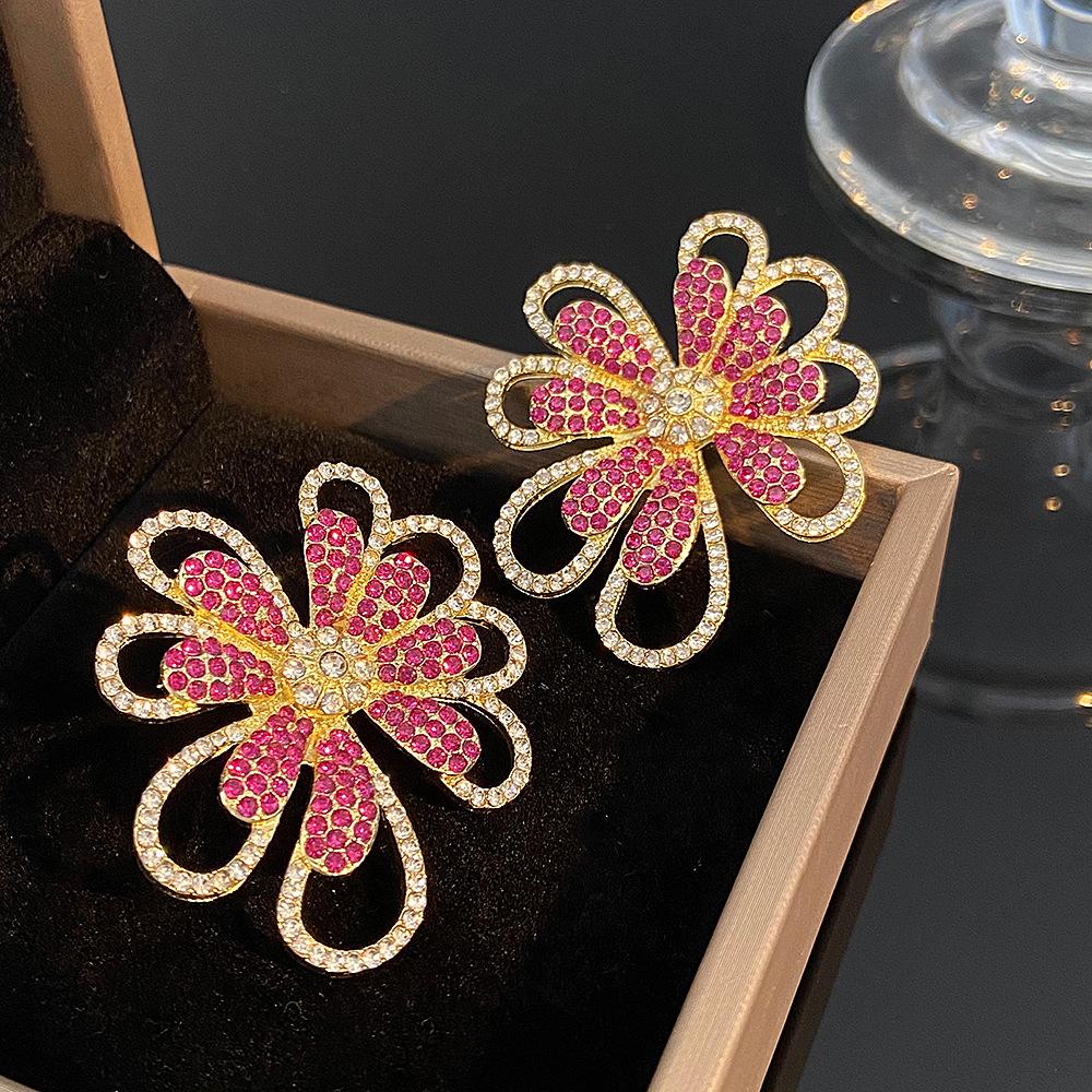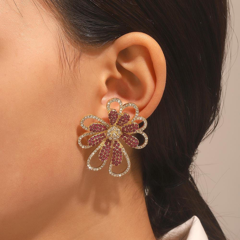 Pendientes de flores súper brillantes con microincrustaciones de diamantes de moda de lujo ligero europeo y americano, pendientes de flores exageradas tridimensionales, pendientes de temperamento al por mayor