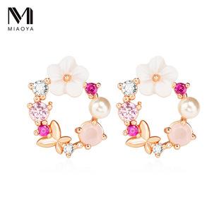 Pendientes de diamantes llenos de temperamento de nicho redondo geométrico de venta caliente transfronteriza europea y americana, pendientes florales retro creativos al por mayor