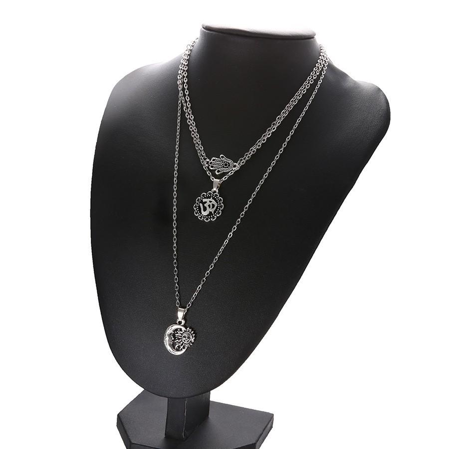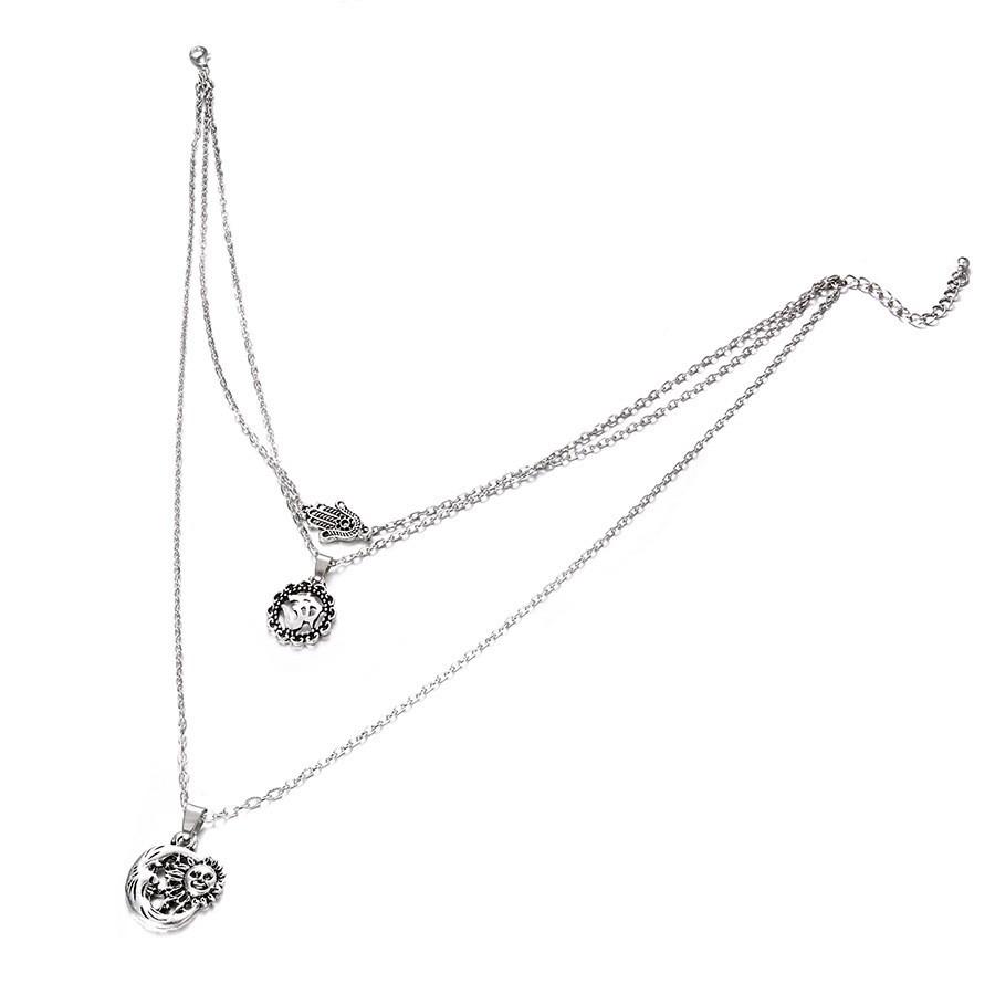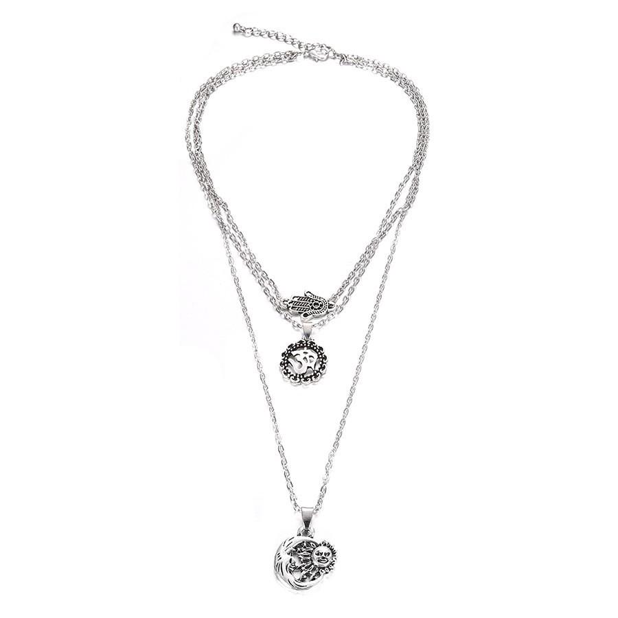 Collar multicapa exclusivo de estilo bohemio con diseño de palmeras 3D y sol, disponible en Amazon.