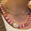 Collar de Ópalo Barroco para Mujer Verano Combinable Lujo Ligero Nicho Vintage Colgante Cadena Clavícula Accesorios