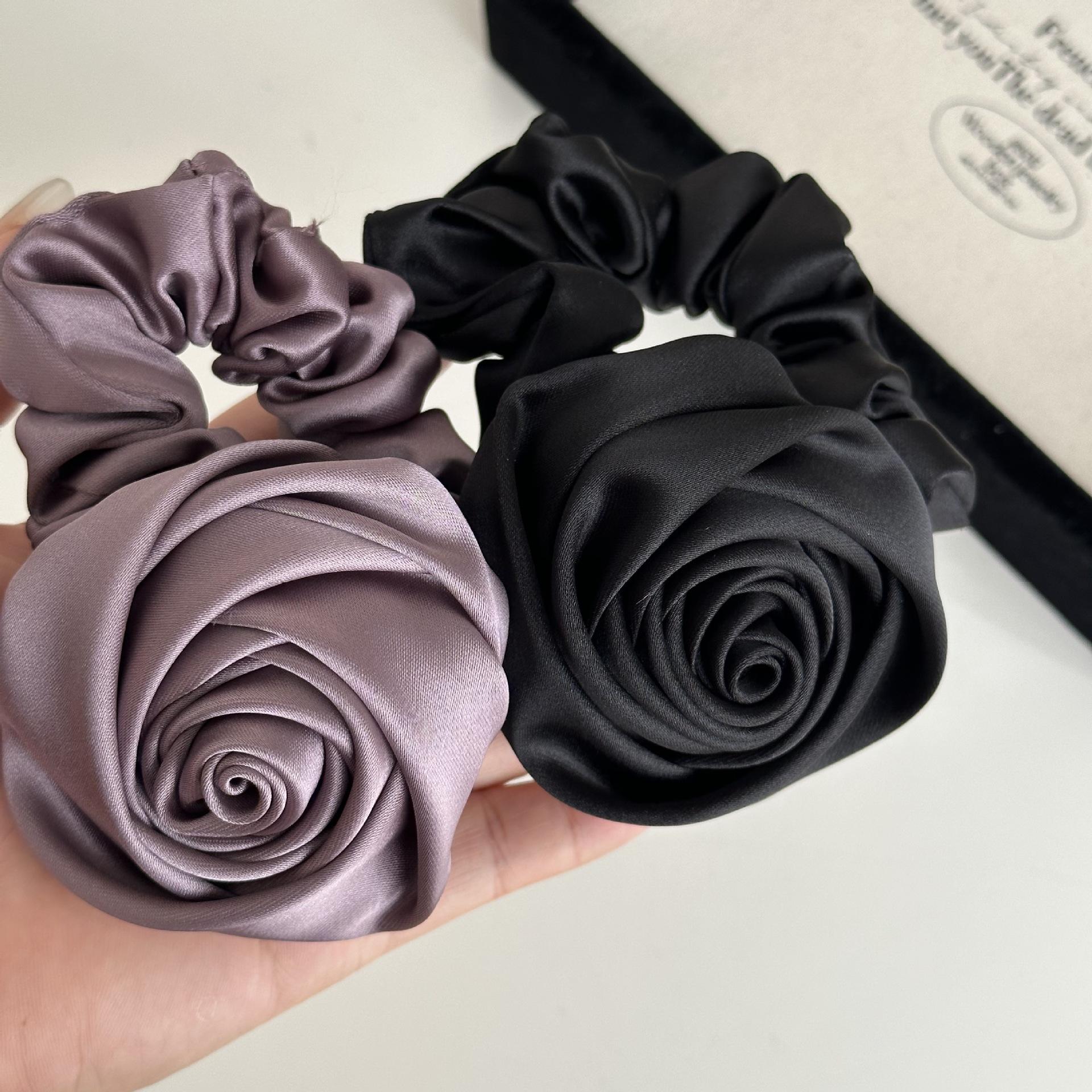 Anillo para el cabello con cuerda para el cabello de alta gama, elegante, retro, francés, satén, súper hada, rosa francesa, intestino grueso, accesorios para el cabello