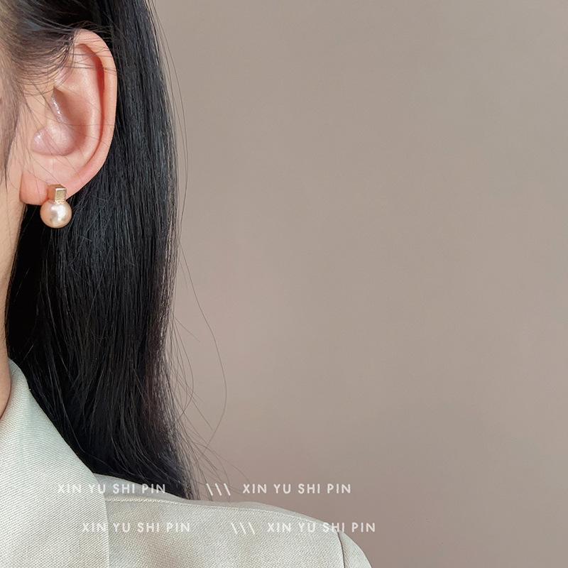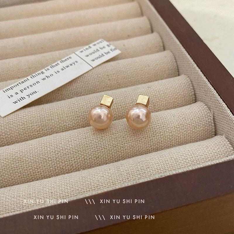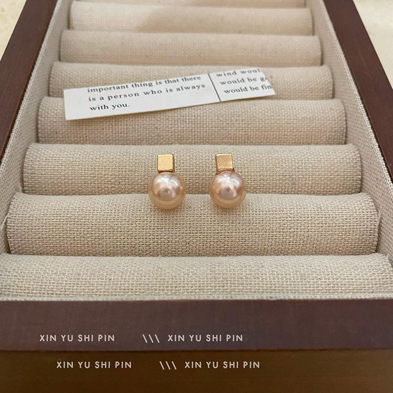 Pendientes de perlas cuadradas geométricas retro francesas 2024, nuevos pendientes sencillos de lujo ligeros y combinables de alta gama.