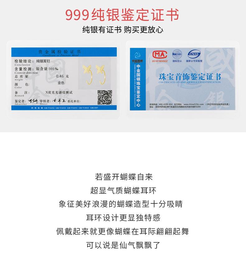 Pendientes de mariposa de plata esterlina s999 coreanos para mujer, estilo 2021, con agujeros para las orejas, sencillos y elegantes, con gancho para las orejas de plata