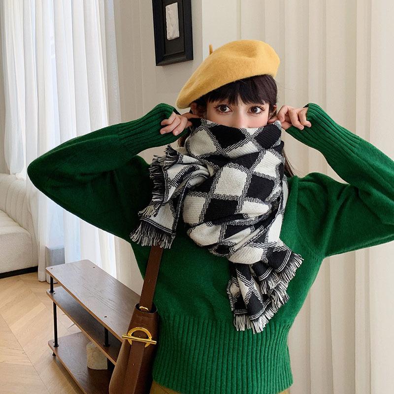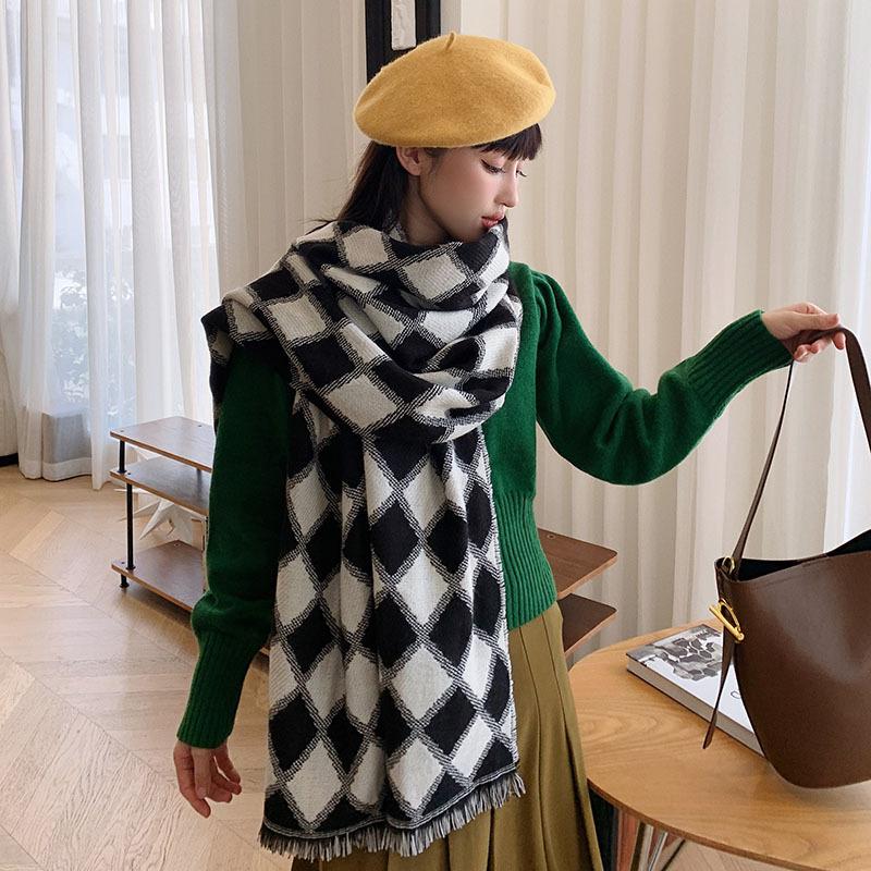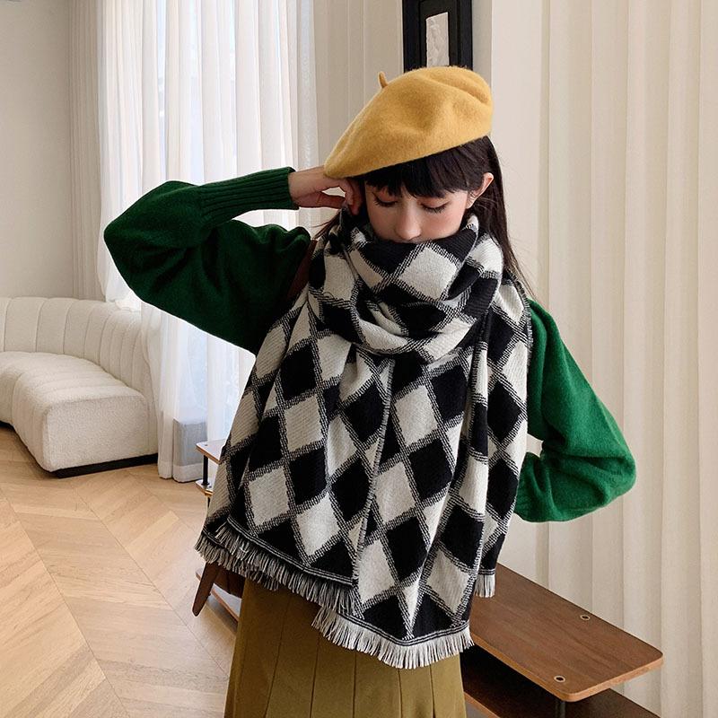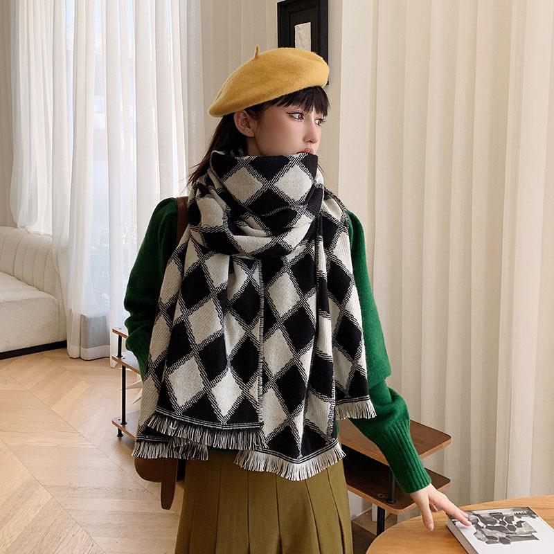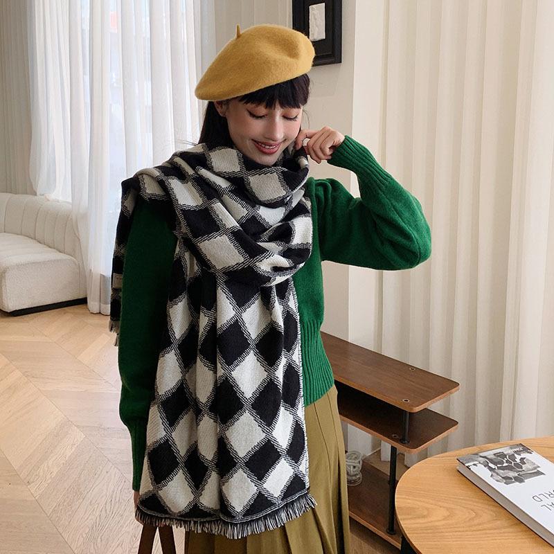 Bufanda de cuadros de diamantes retro de estilo coreano, otoño e invierno, gruesa y cálida, de imitación de cachemira, chal informal de moda que combina con todo.