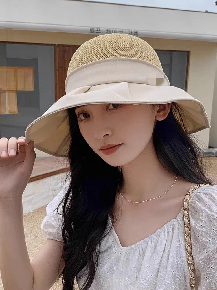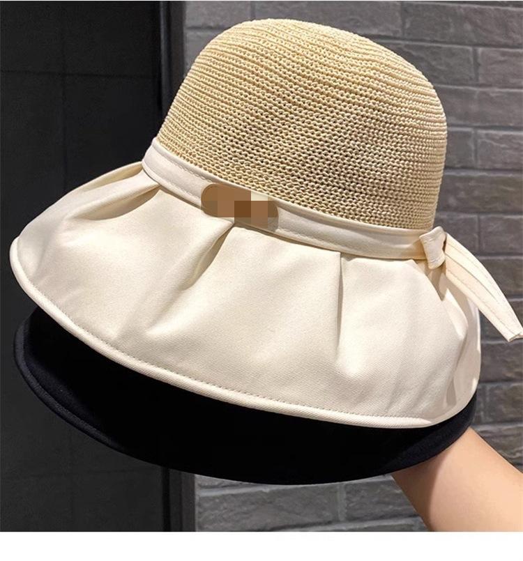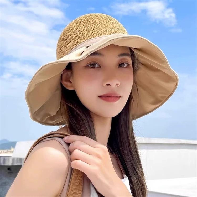 Sombrero de pescador de ala ancha con protección facial para mujer, sombrero de verano para mujer, sombrero de protección solar para exteriores de estilo coreano que combina con todo.