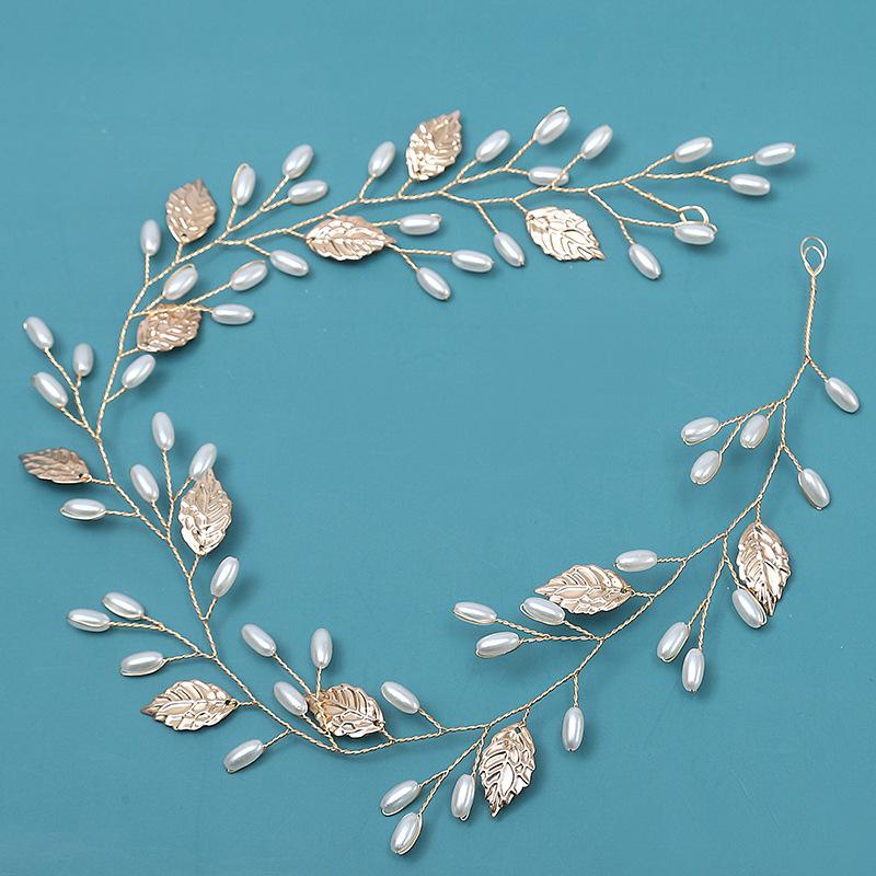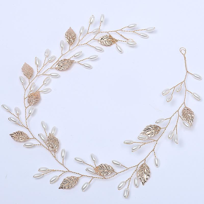 Tocado nupcial transfronterizo europeo y americano hoja dorada accesorios populares para el cabello alambre de cobre de aleación banda para el cabello diadema de hada Mori al por mayor
