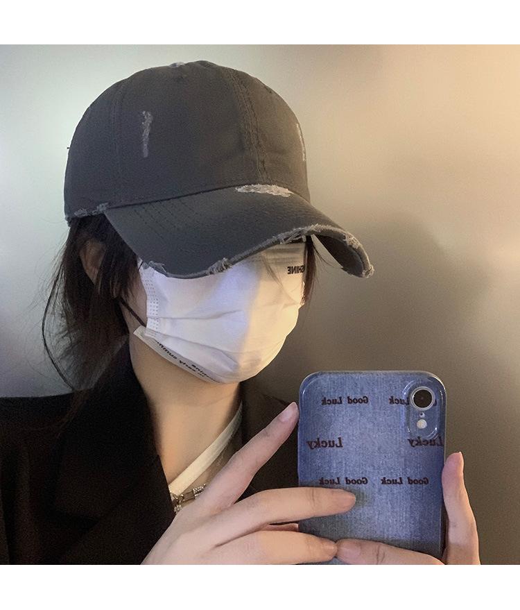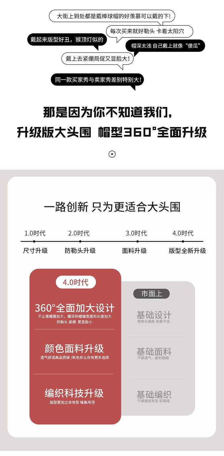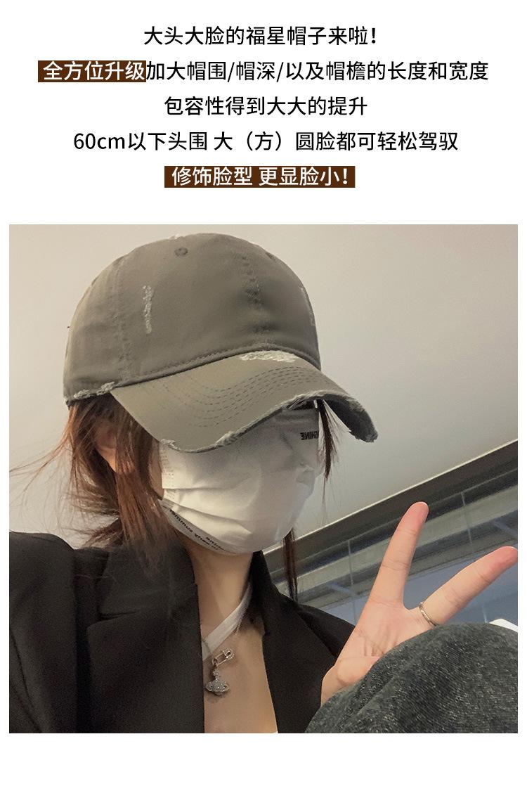 Gorra de béisbol para mujer, estilo americano, rasgada, de ala ancha, que hace que el rostro parezca pequeño, gorra de talla grande con visera profunda, de ala larga, con circunferencia de cabeza grande.
