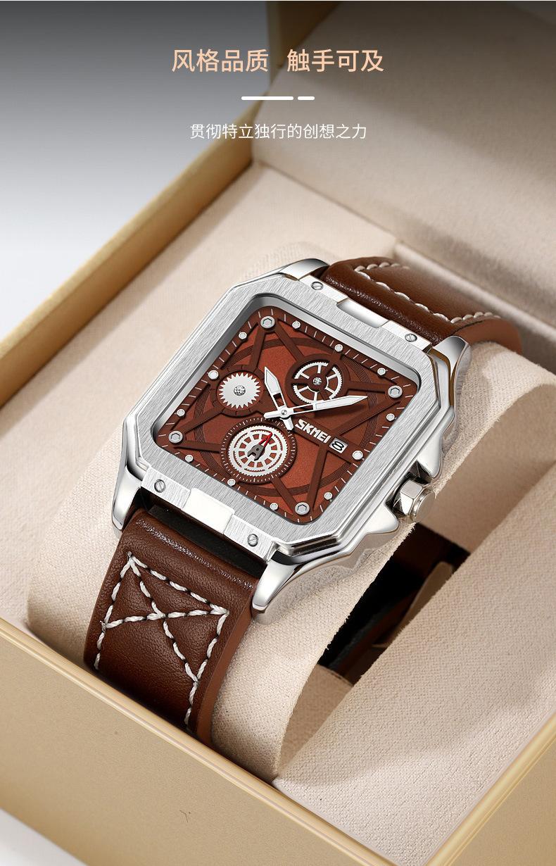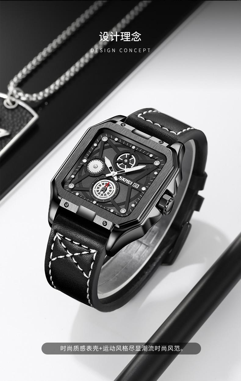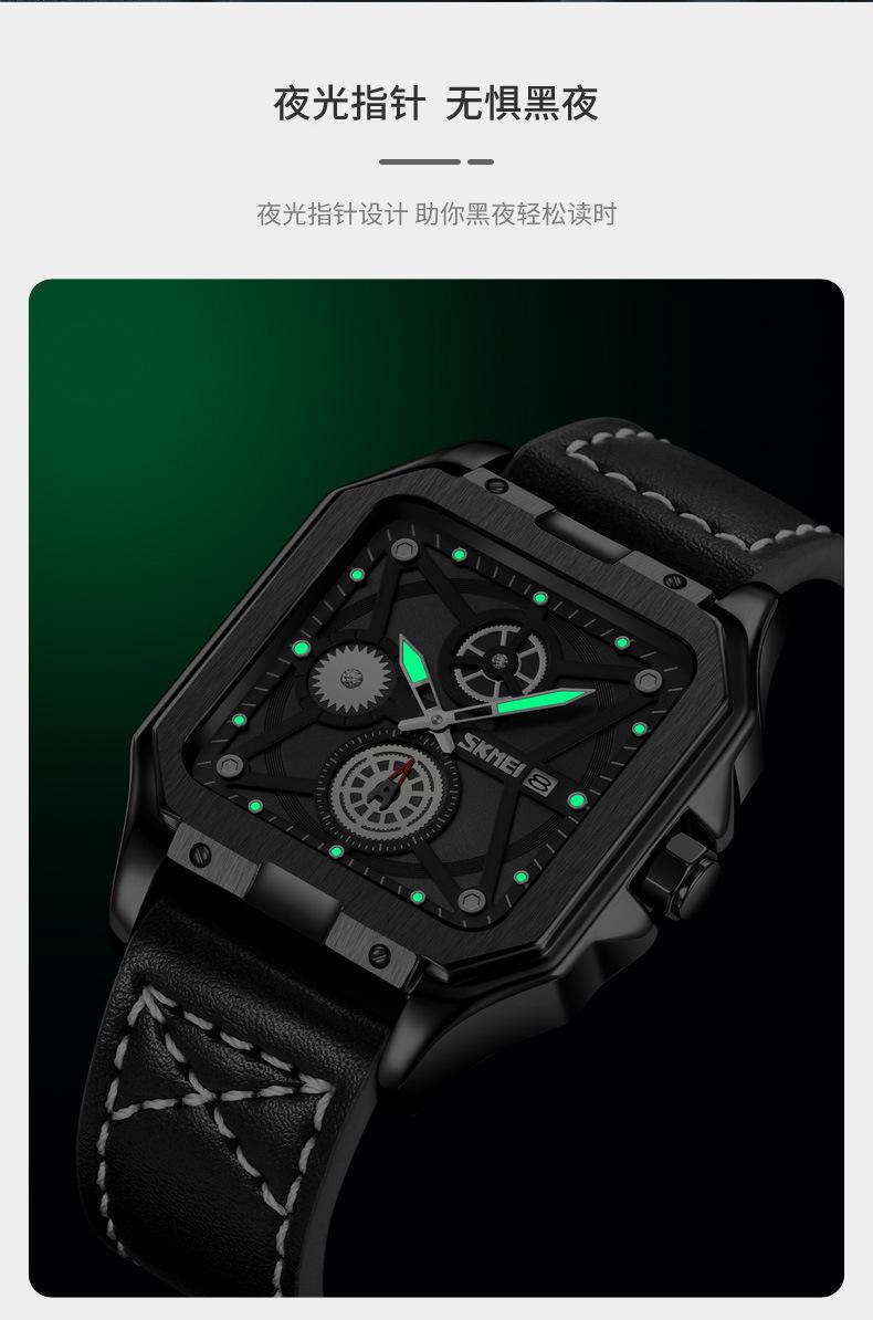 Reloj Skmei cuadrado para hombre, de cuarzo, de moda, luminoso, resistente al agua y con múltiples funciones.