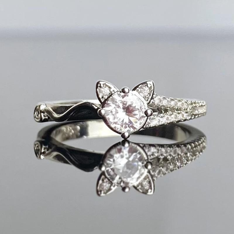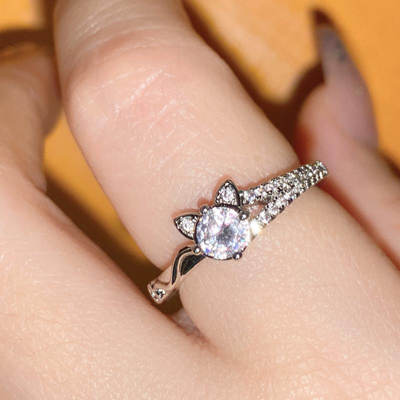 Anillo para mujer Long Rui Europa y Estados Unidos transfronterizo gatito anillo de diamantes de simulación nicho moda personalidad lleno de circonio anillo para dedo índice venta al por mayor