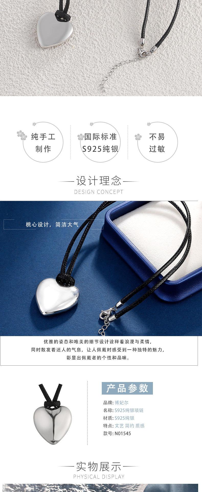 Collar Bofeier hecho a mano de plata esterlina S925 con colgante de amor, diseño de nicho, sentido de la moda transfronteriza europea y americana, estilo ins