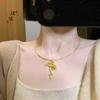 Colgante de clavícula para mujer, diseño creativo, estilo retro, con diseño de hoja de loto, flor pequeña, gato Mori, de plata S925, de Golden Deer King