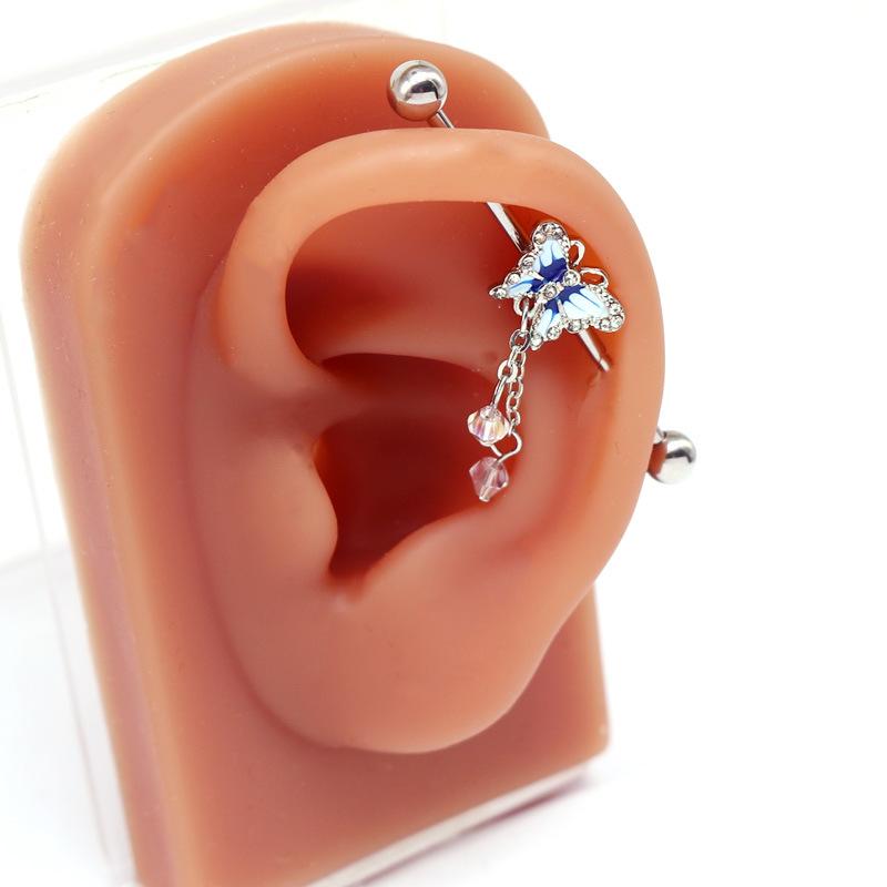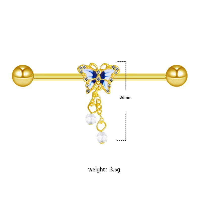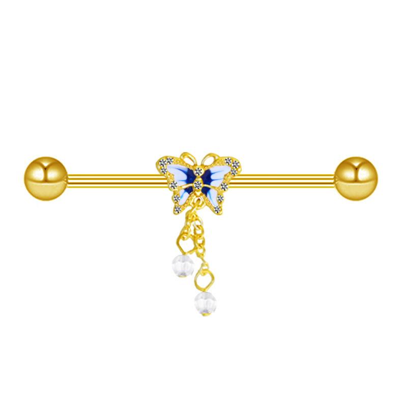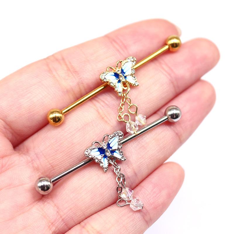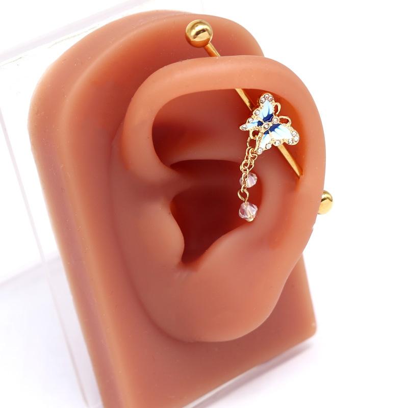 Pendientes de mariposa de moda de lujo ligeros transfronterizos europeos y americanos de Gaibei, pendientes de oreja largos con barra industrial para perforación de oreja