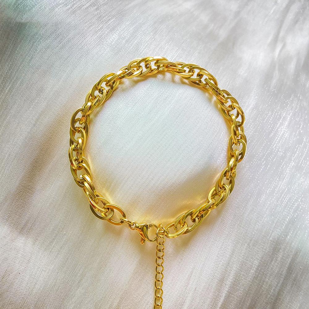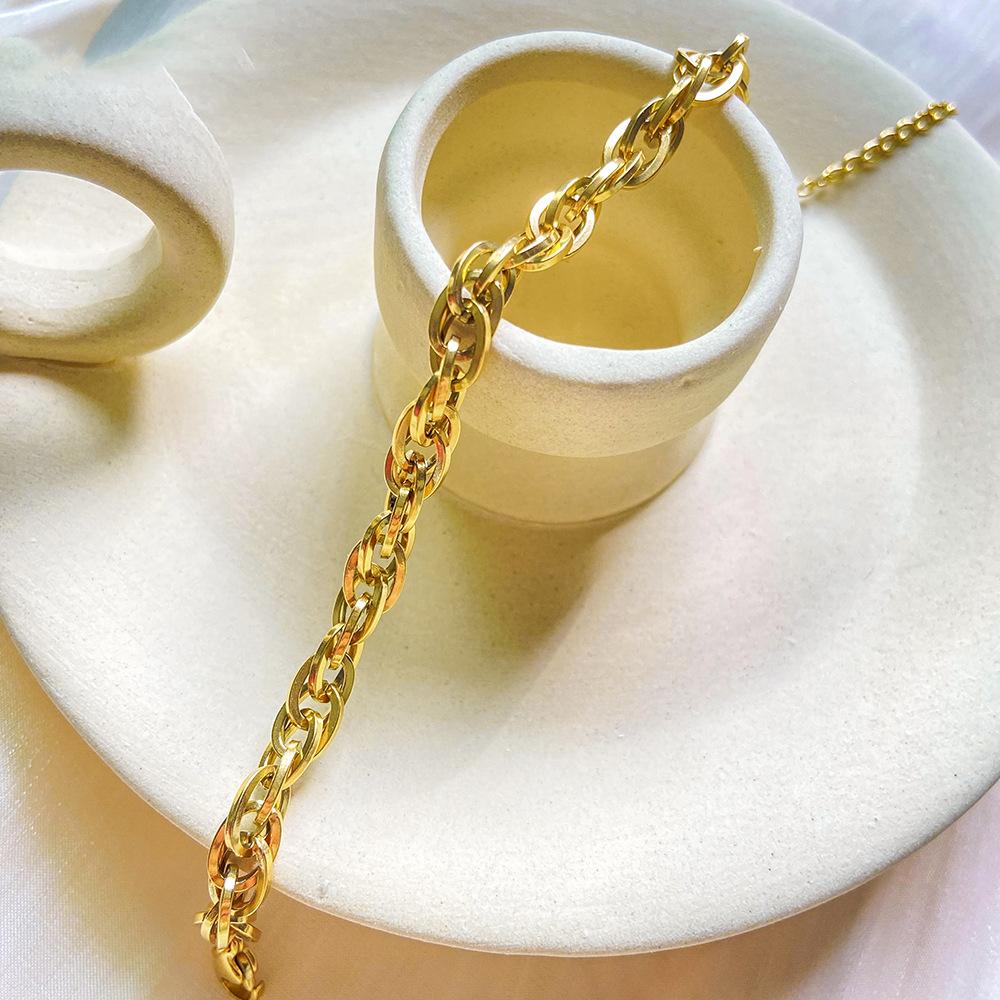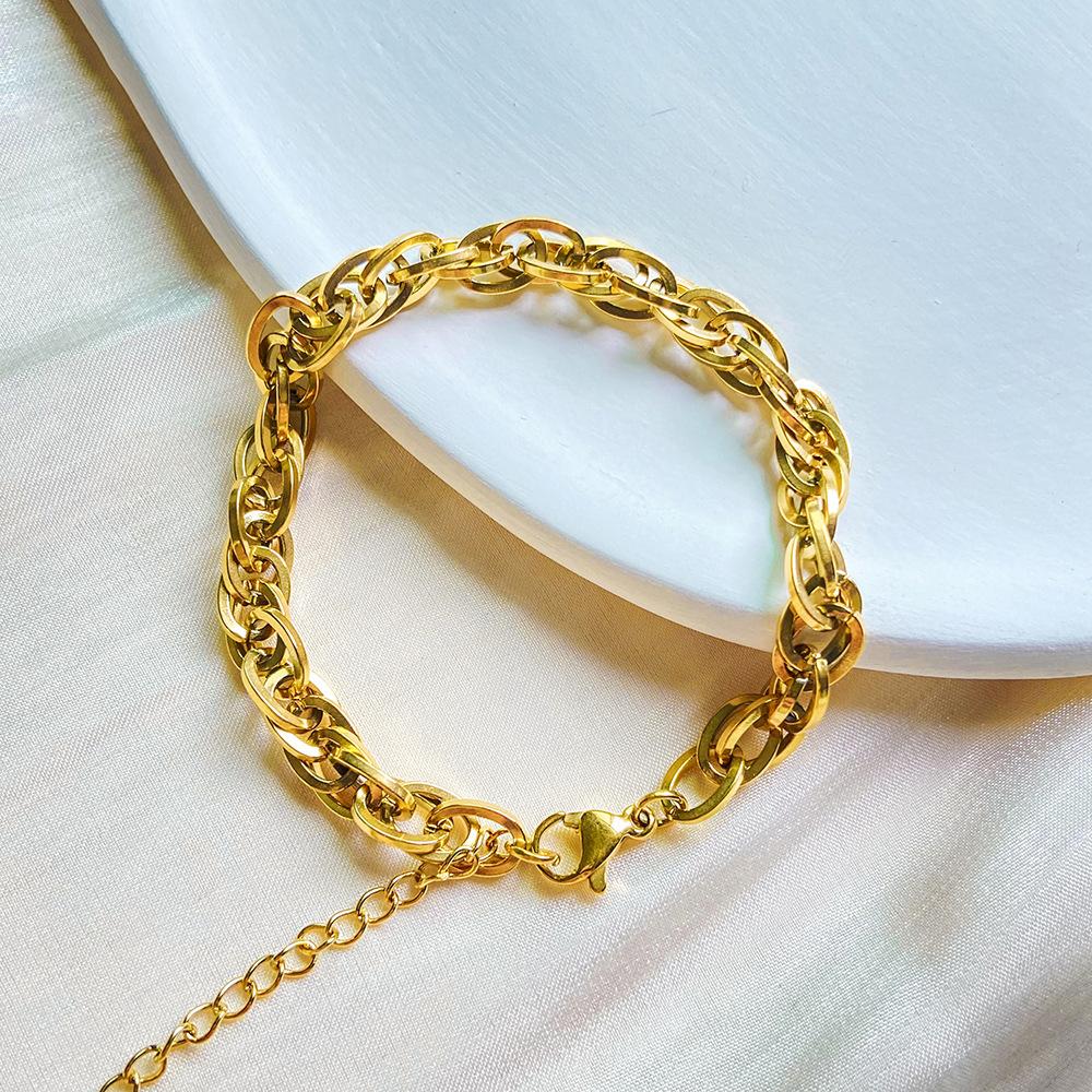 Pulsera Europea y Americana Retro Simple Estilo Ins Acero de Titanio Pulsera de Acero de Titanio Chapada en Oro para Mujer