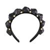Diadema de organza transpirable de color sólido con estilo moderno y transmisión en vivo de celebridades de Internet, accesorios para el cabello con hebilla para la cabeza, diadema femenina tridimensional con calavera alta y diamantes de imitación