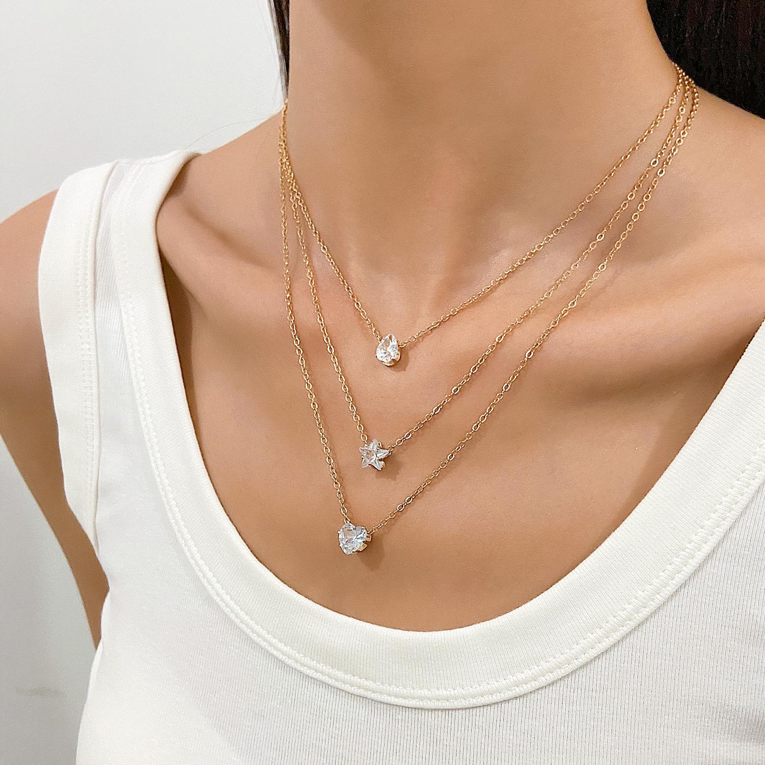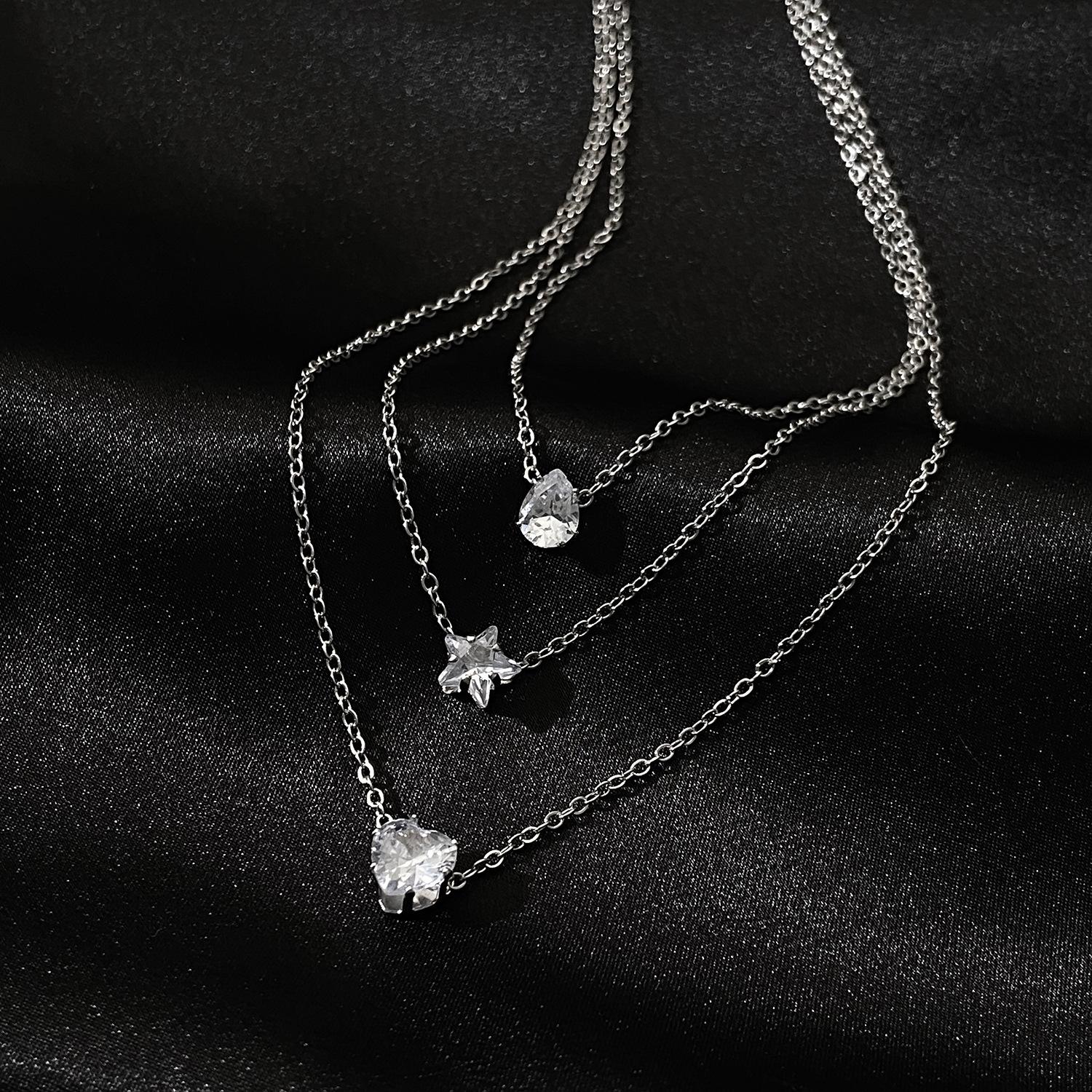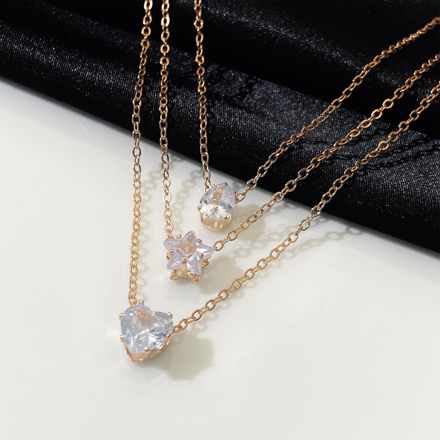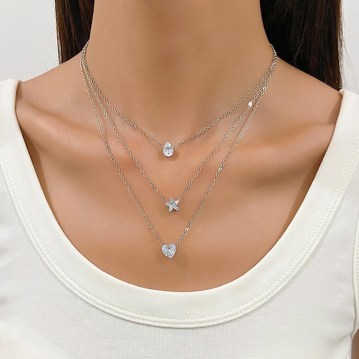 Collar elegante de tres capas con colgante de estrella de gota de agua y amor transfronterizo, cadena de clavícula con cristal de circonita para mujer, venta al por mayor