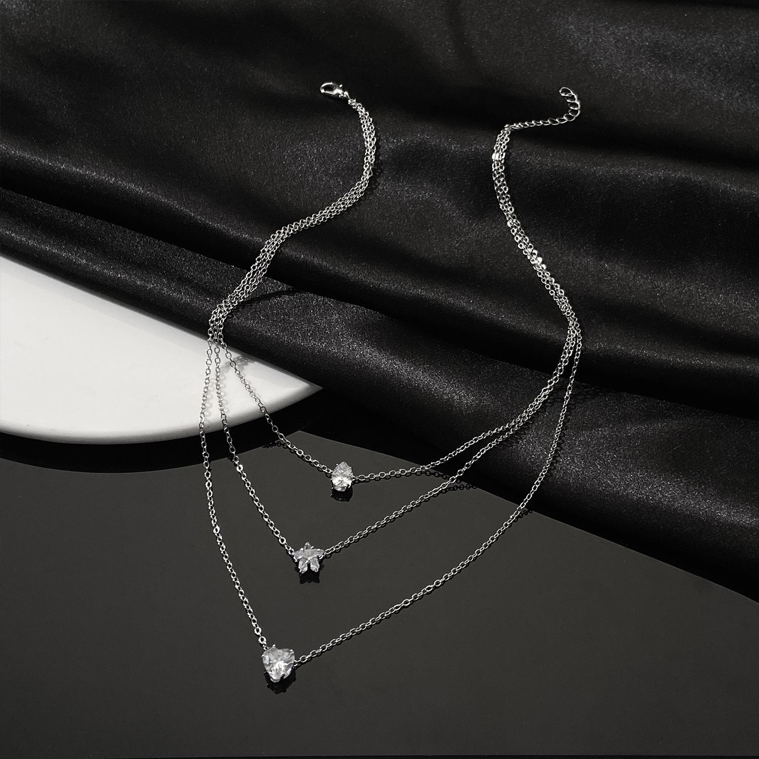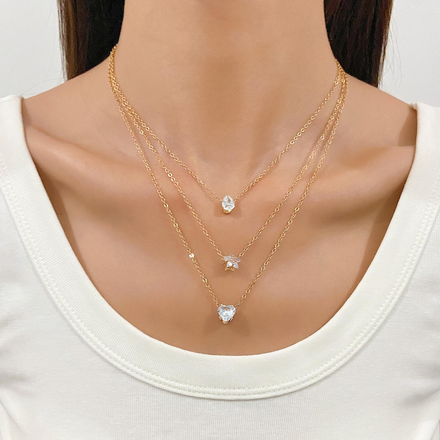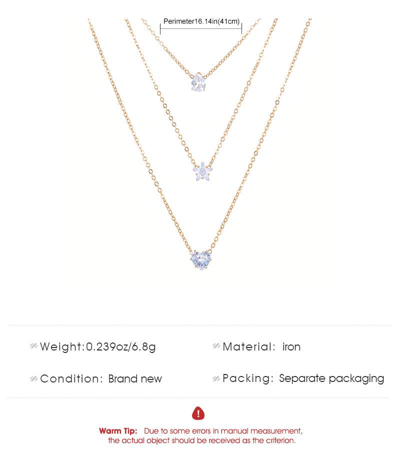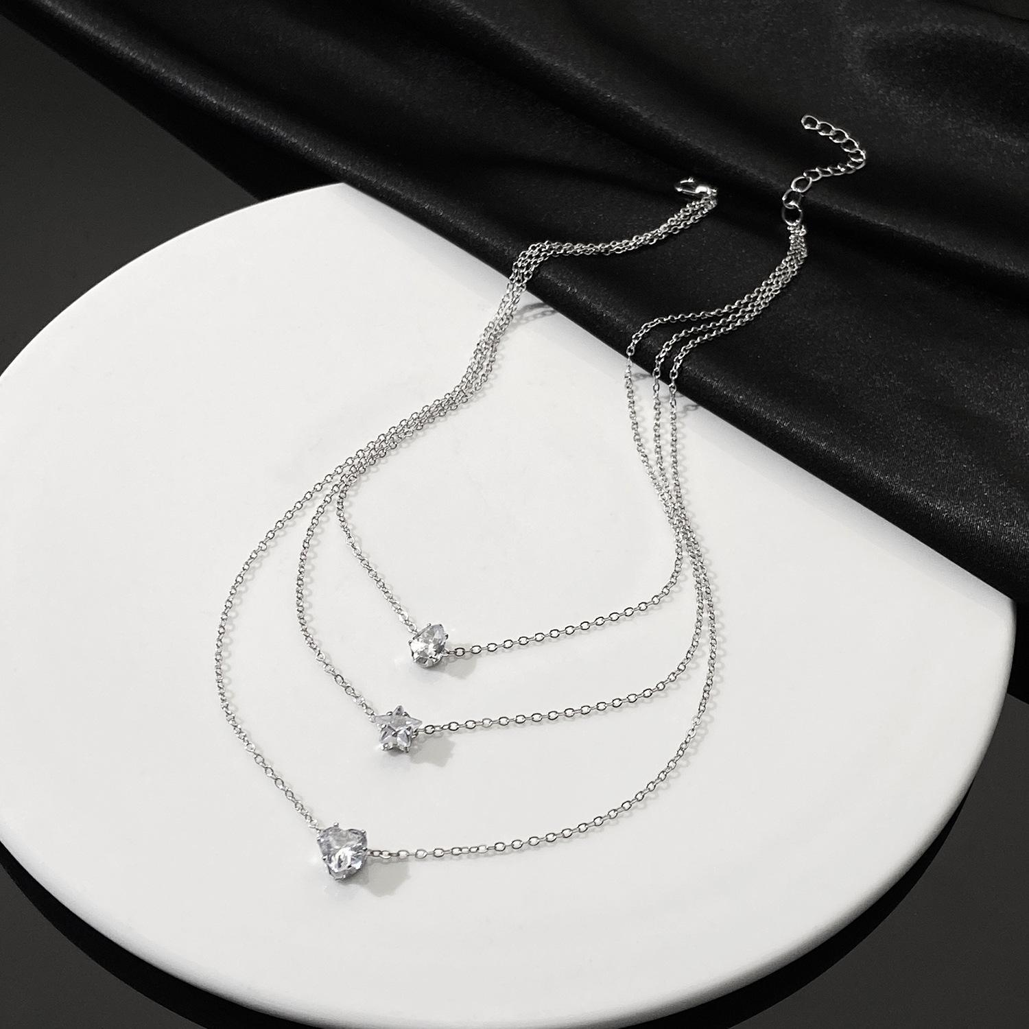 Collar elegante de tres capas con colgante de estrella de gota de agua y amor transfronterizo, cadena de clavícula con cristal de circonita para mujer, venta al por mayor