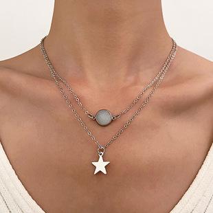 Nuevo collar multicapa de piedra preciosa esmerilada de estrella de cinco puntas, comercio exterior transfronterizo, segunda capa, importación y exportación, colgante, collar, joyería