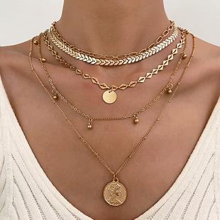 Collar con colgante redondo de múltiples capas con retrato de animal de tendencia de moda europea y americana, collar multicapa con personalidad retro, venta al por mayor transfronteriza