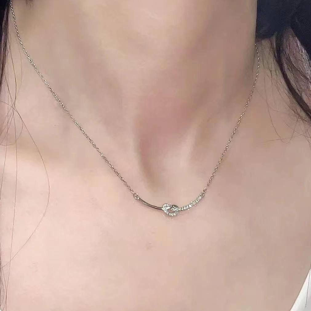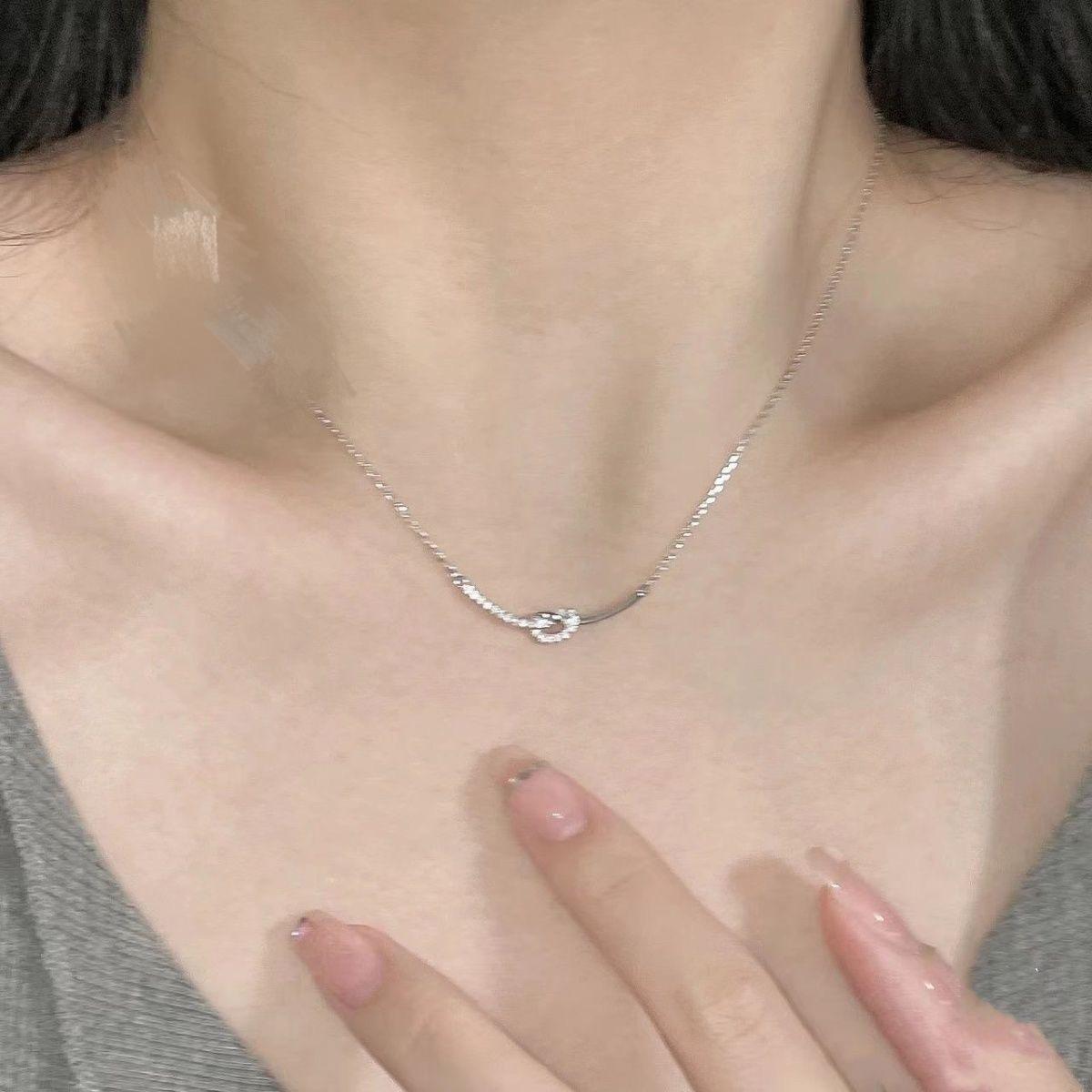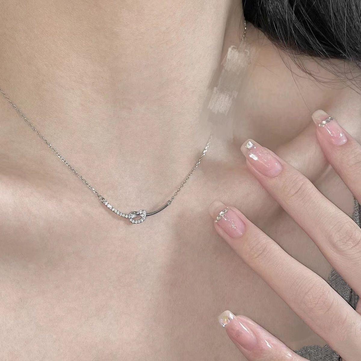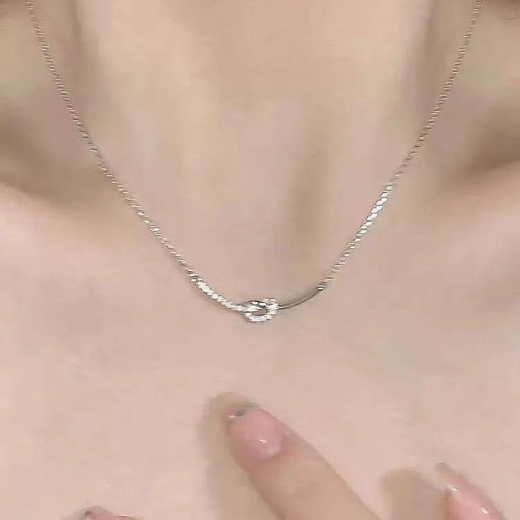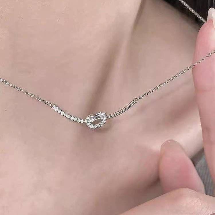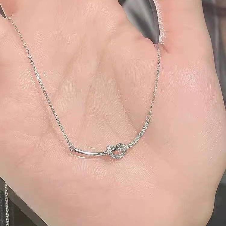 Collar con nudo del mismo estilo del Libro Rojo para mujer, diseño avanzado de nicho, cadena de clavícula con sentido del sentido, cadena de acero de titanio, collar resistente a la decoloración