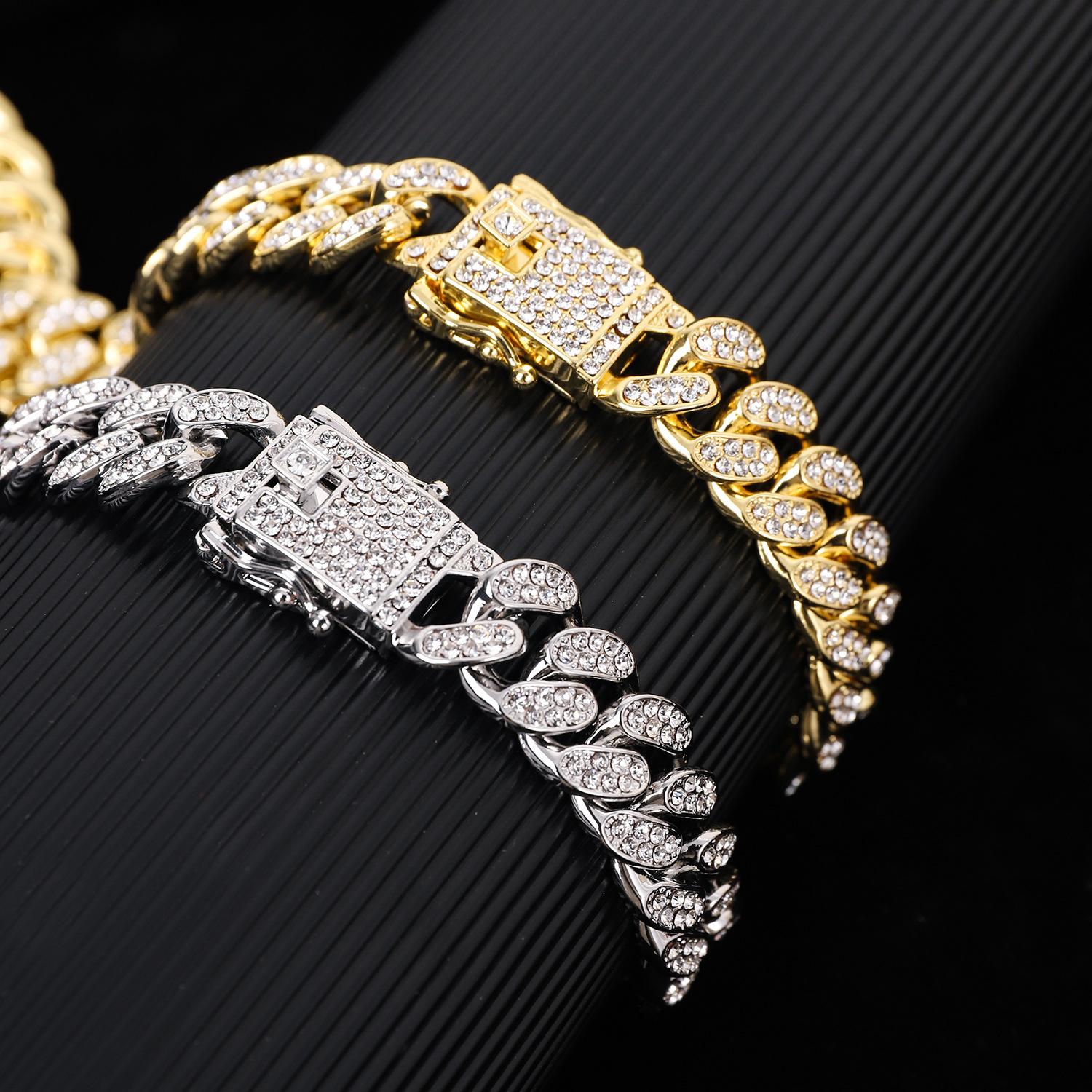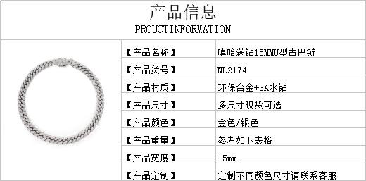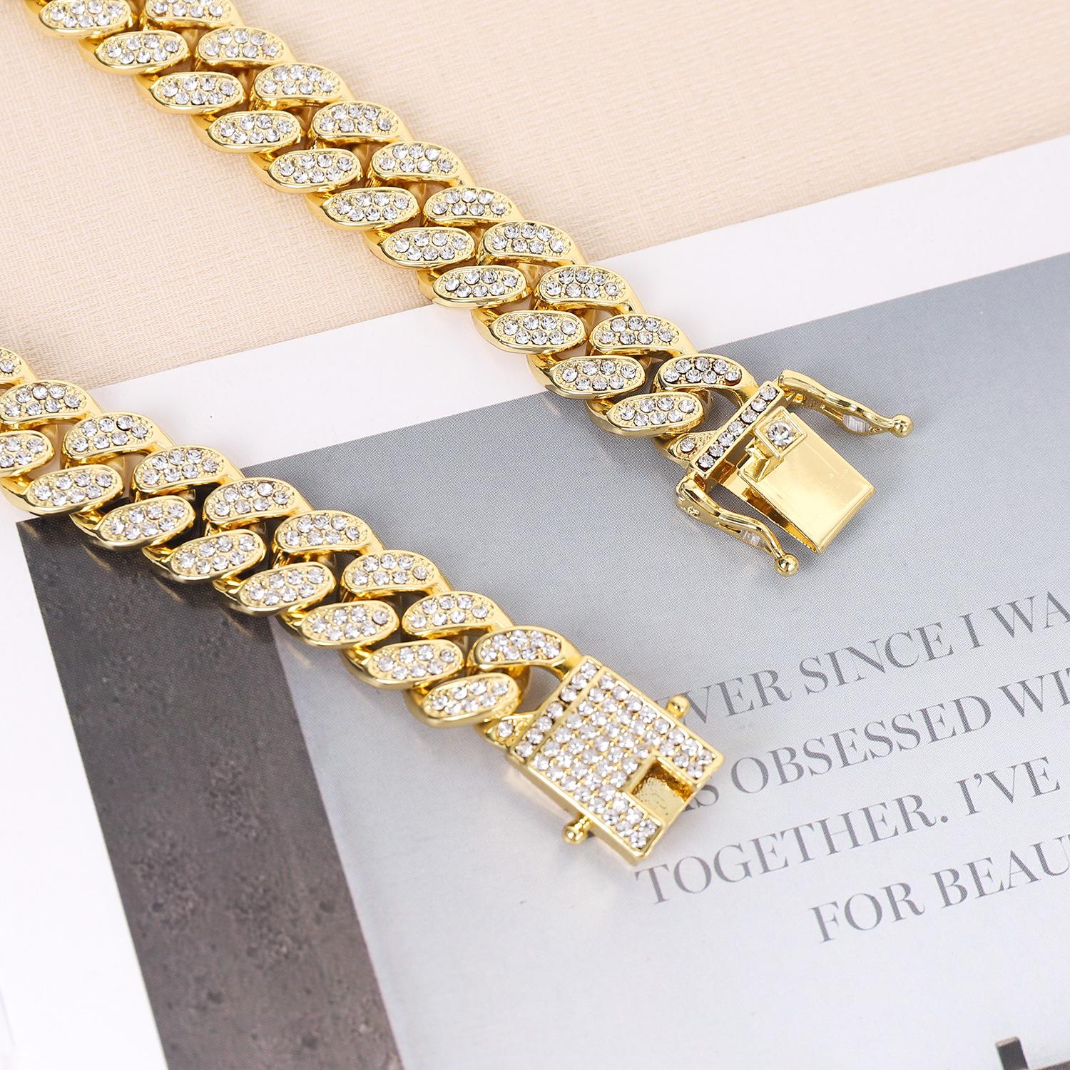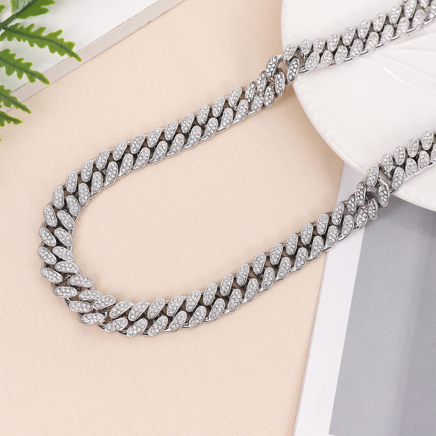 Collar cubano de aleación de diamantes de 15 mm con estilo hip-hop europeo y americano, joyería transfronteriza, cadena cubana de hip-hop, joyería para hombres y mujeres