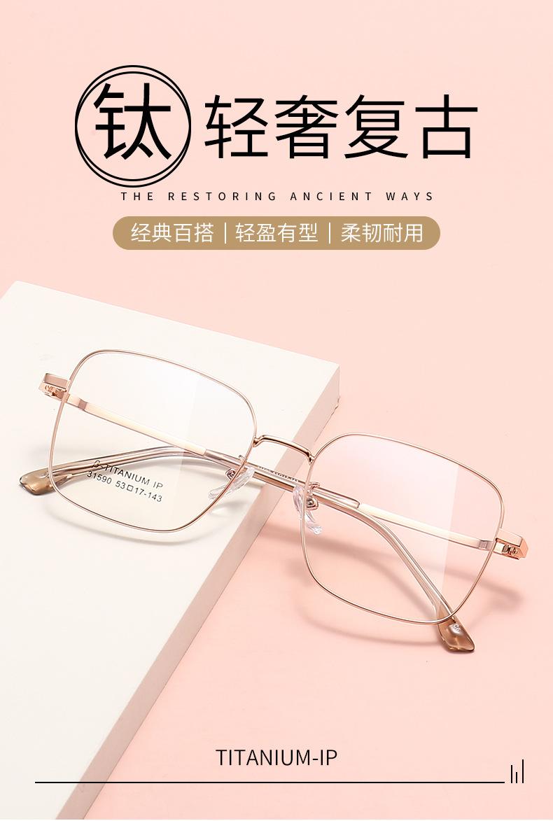 Nueva Montura de Gafas Semi-Titanio Montura Cuadrada Retro Montura para Miopía para Estudiantes Montura Metálica Literaria Montura para Adelgazar el Rostro Redondo 31590
