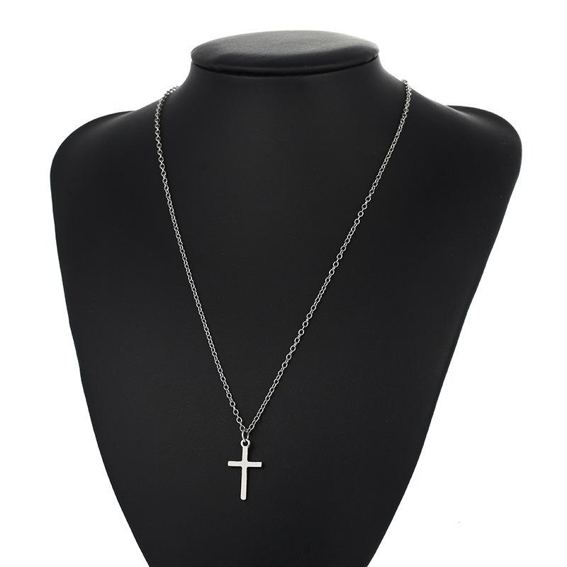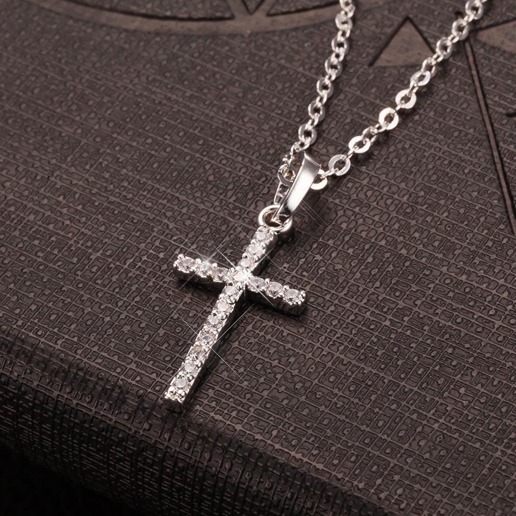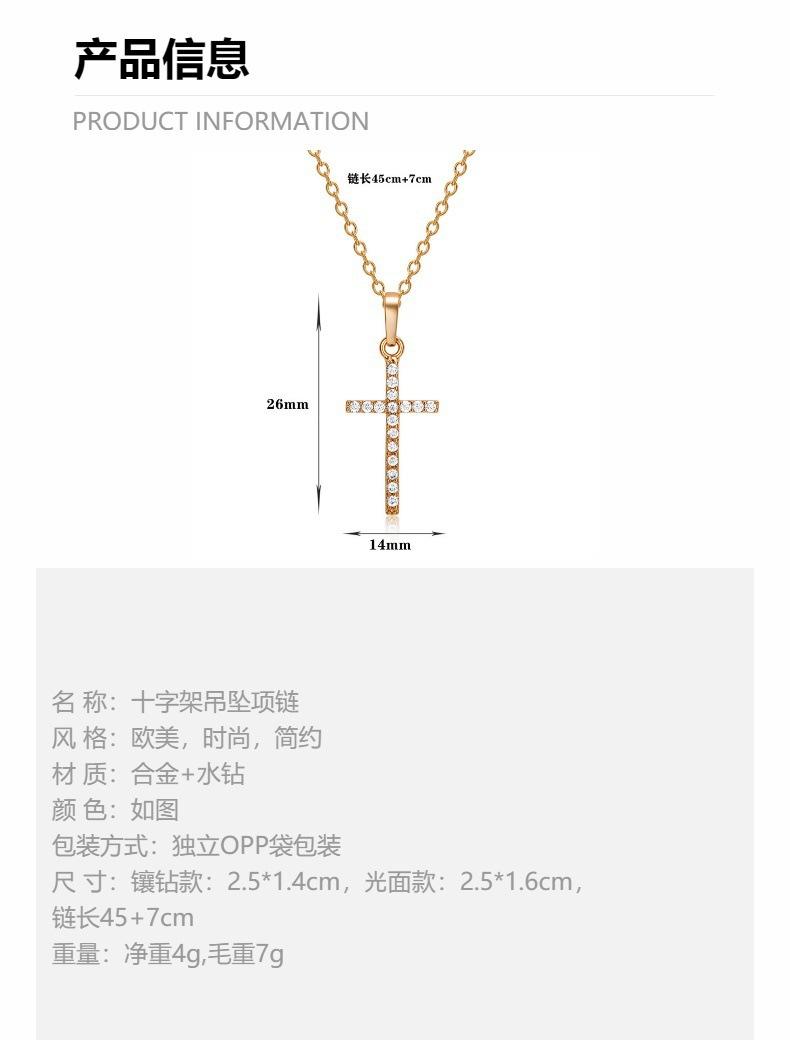 Collar con colgante de cruz de diamantes sencillo, cadena de clavícula, joyería transfronteriza europea y americana, collar de moda con creencias religiosas que combina con todo.
