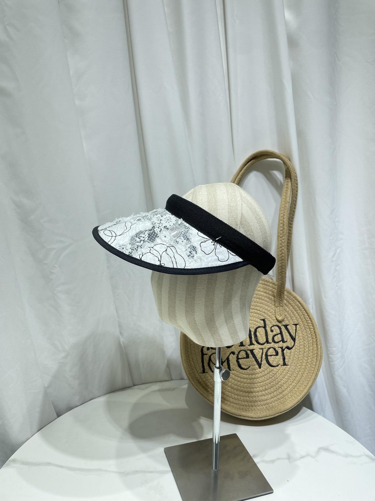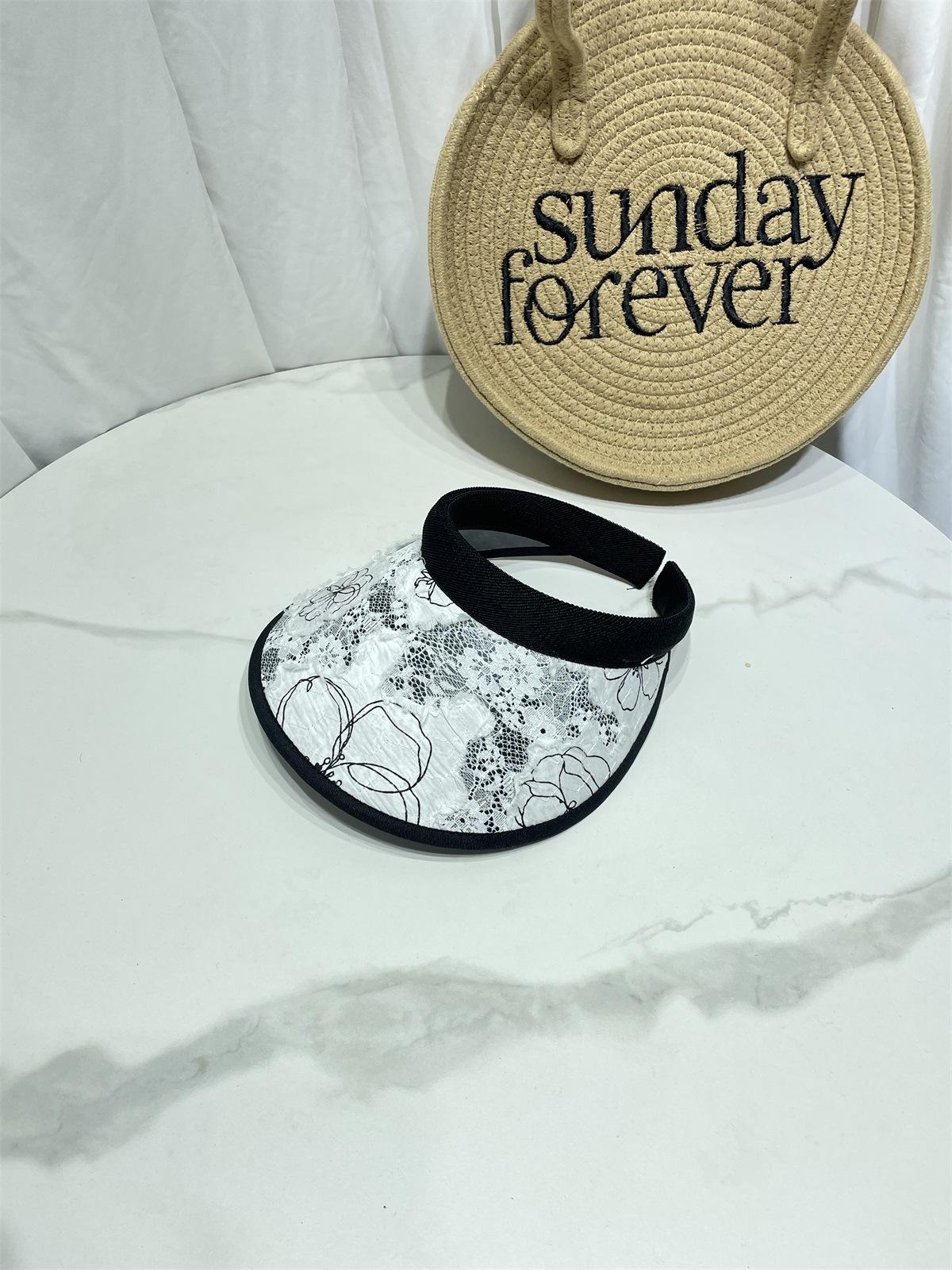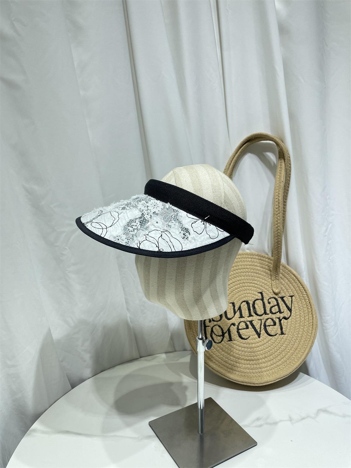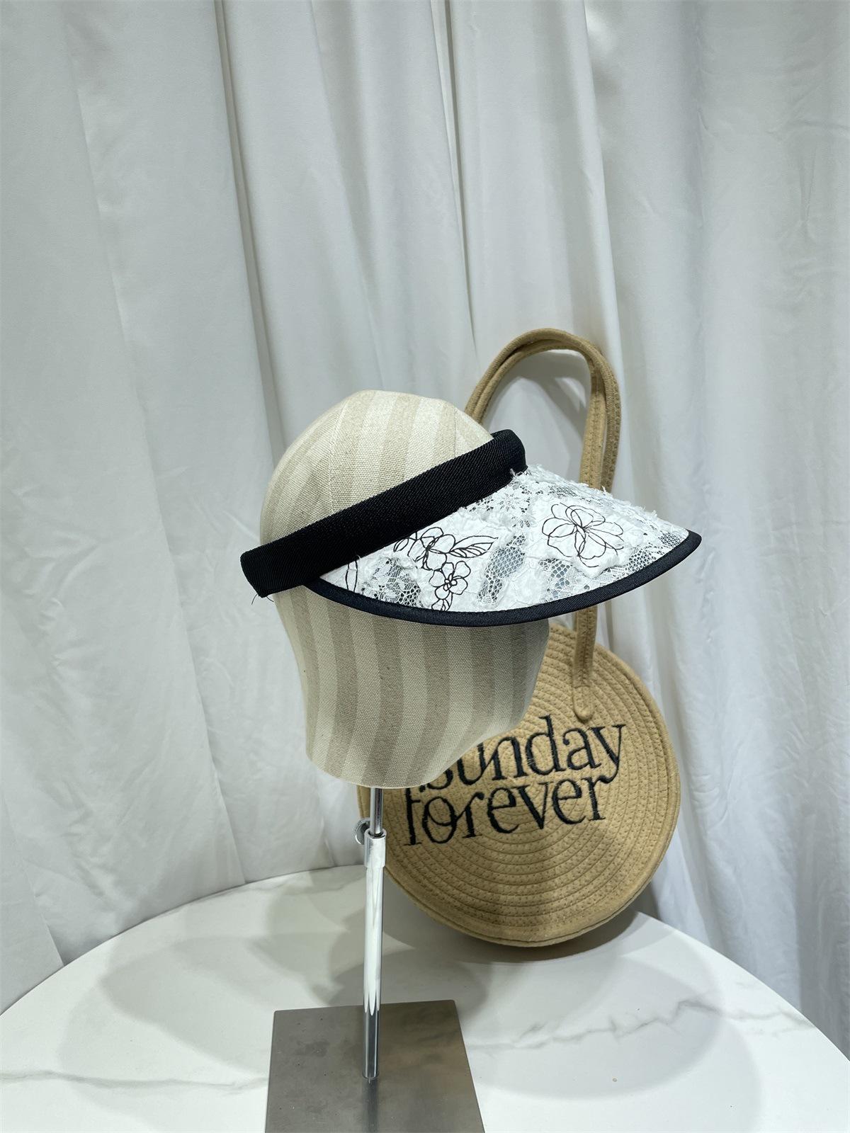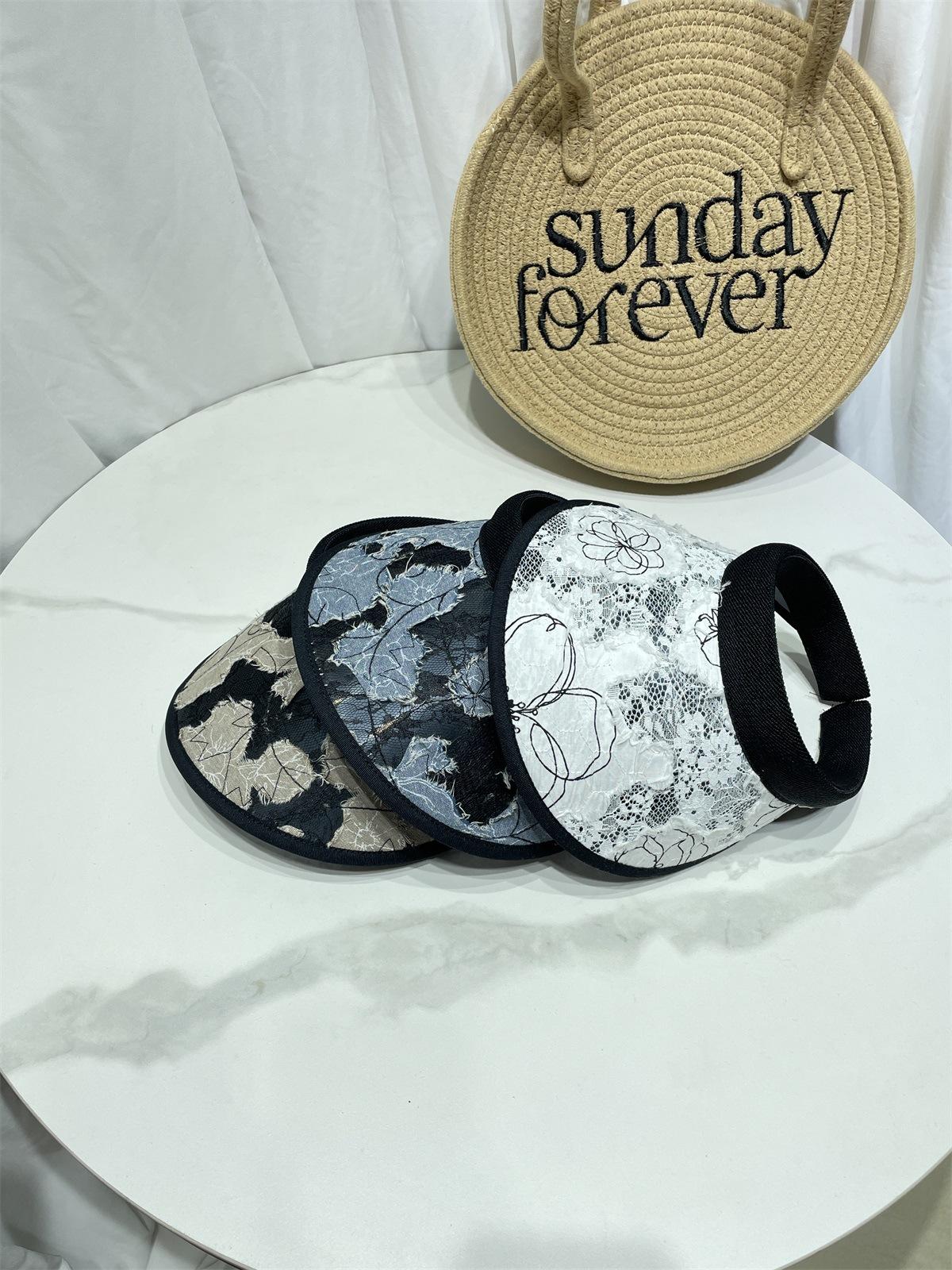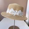 Sombrero de copa vacío de ala grande con encaje floral elegante de moda japonesa para mujer, sombrero de viaje de verano con protección solar, sombrero con diadema
