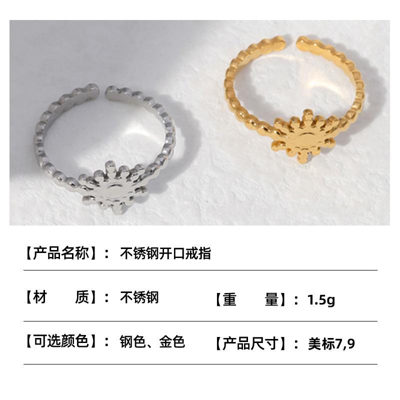 Anillo Europeo y Americano Transfronterizo Sol Acero Titanio Anillo de Apertura Ajustable para Mujer Acero Inoxidable Nicho Anillo que No se Desvanece Venta al por Mayor