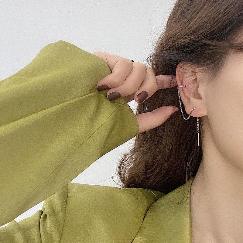 Aretes simples de tuerca para el cartílago de la oreja para mujer Corea del Sur 2021 nueva moda aretes de hebilla para la oreja estilo frío anillo para la oreja borla línea para la oreja