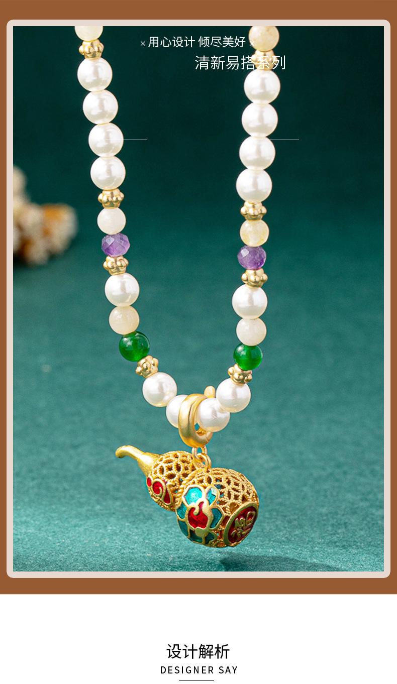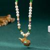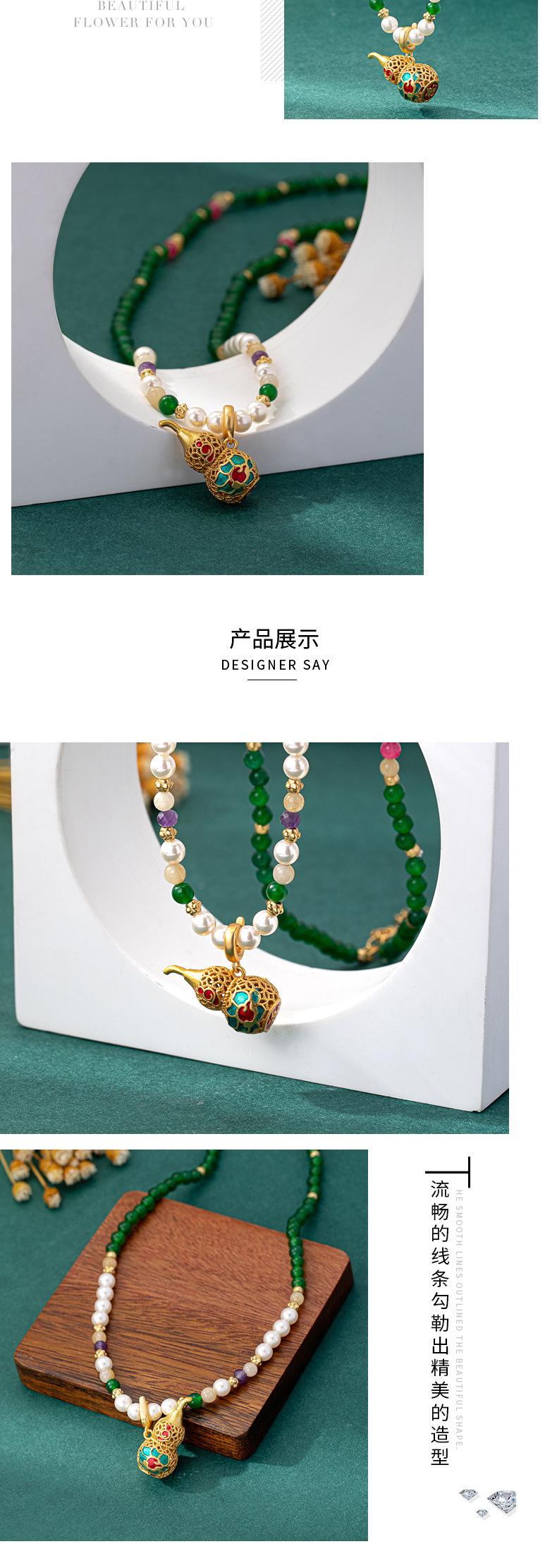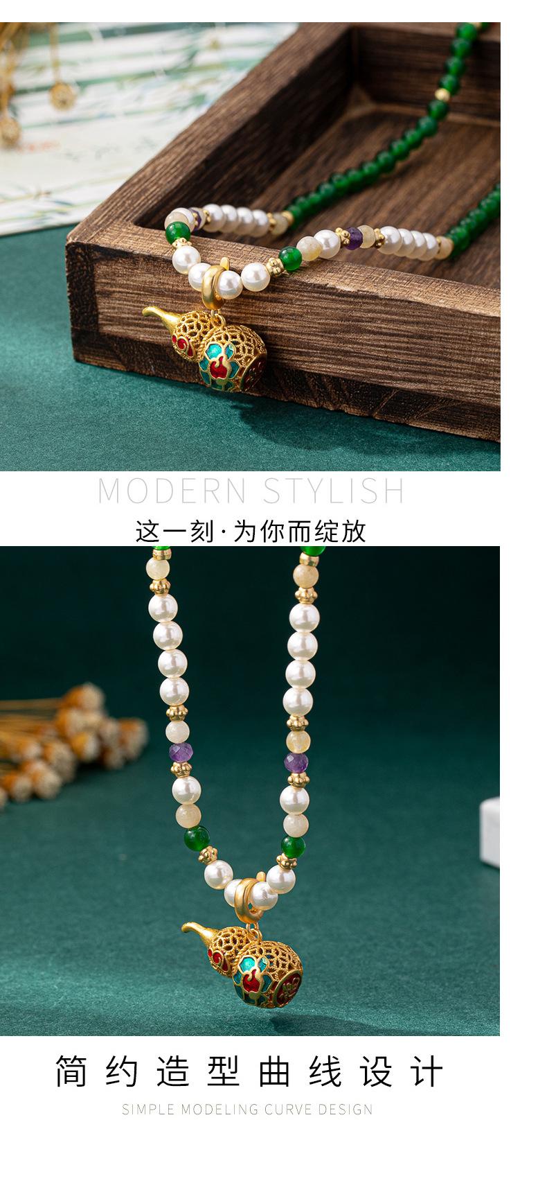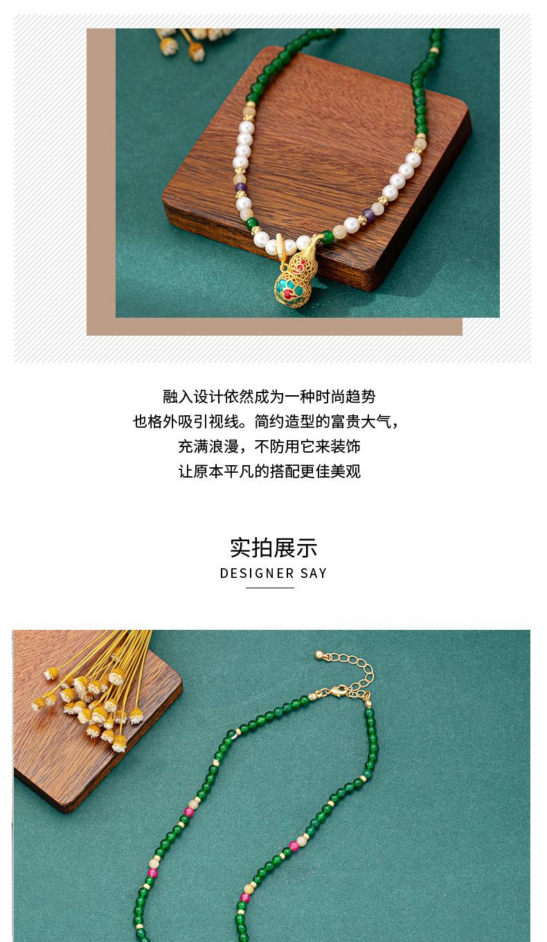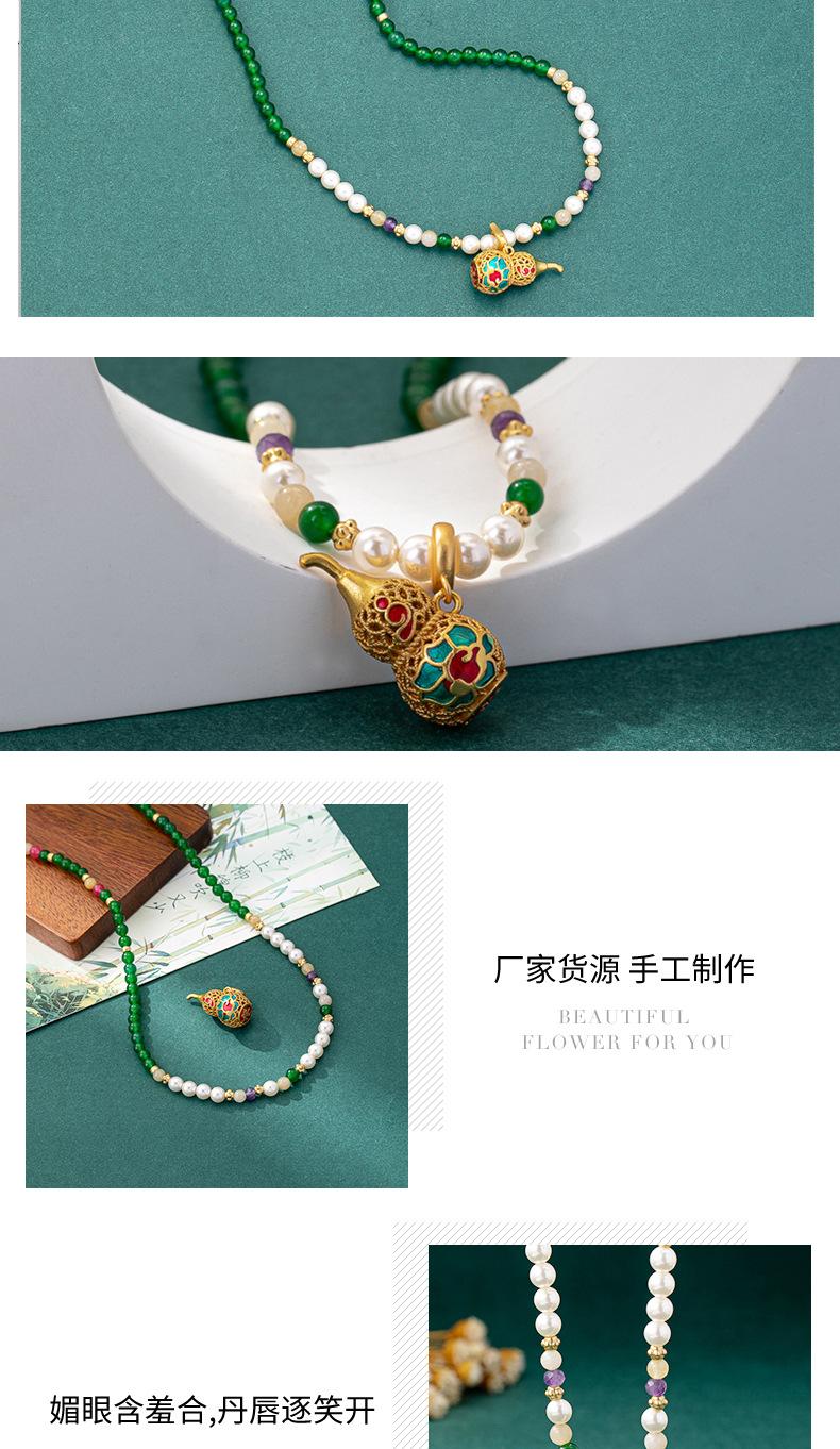 Collar de ágata verde natural con colgante de calabaza y cadena de clavícula con cuentas, collar de perlas simple, ligero y de alta calidad para mujer.