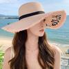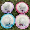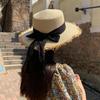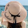 Sombrero de paja de ala ancha bordado de verano para protección solar, moda femenina, sombrero de sol sencillo con lazo de cinta con letras, sombrero de sol dulce