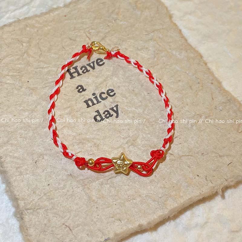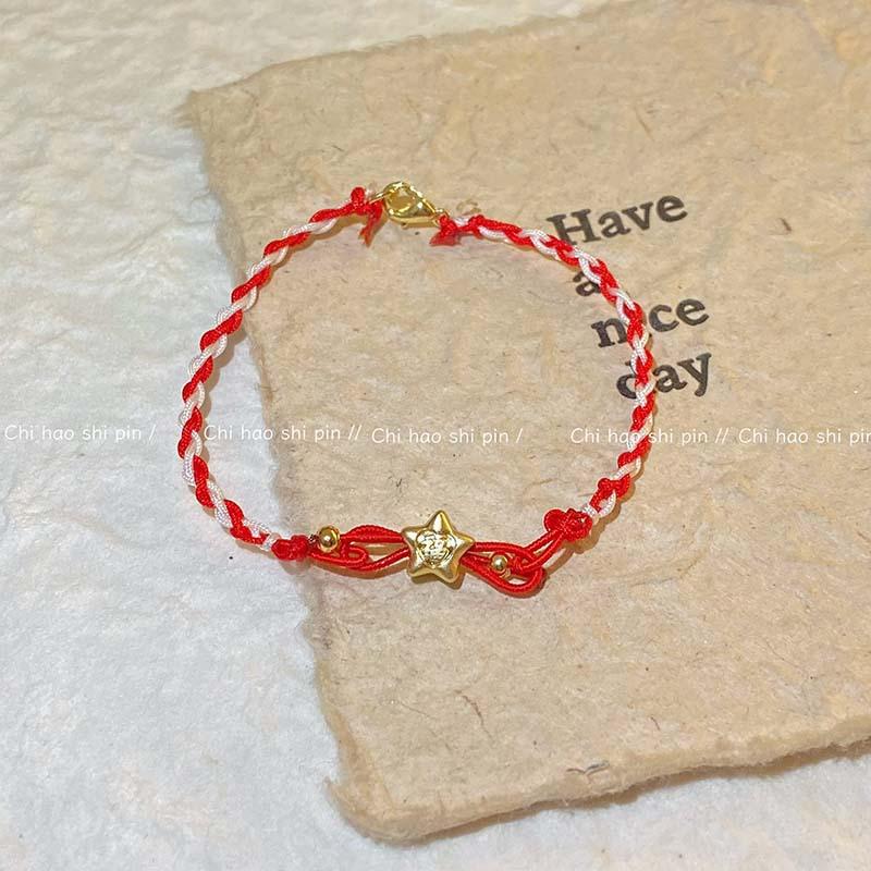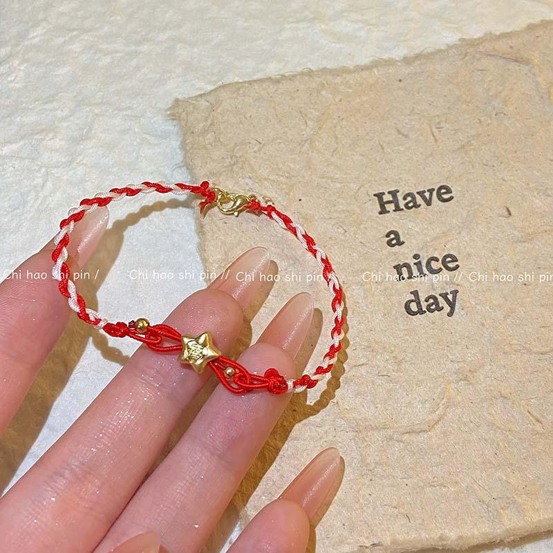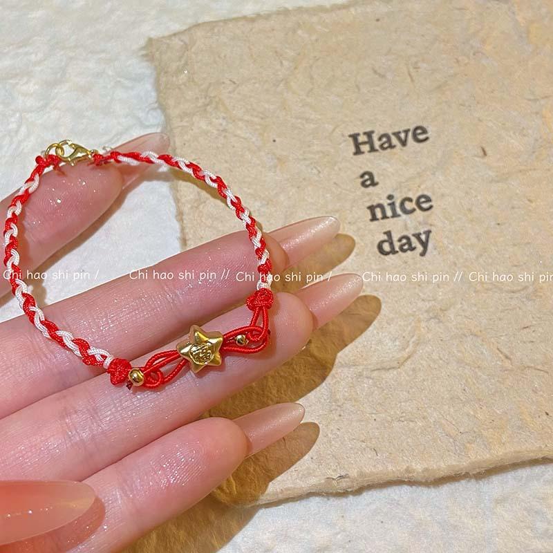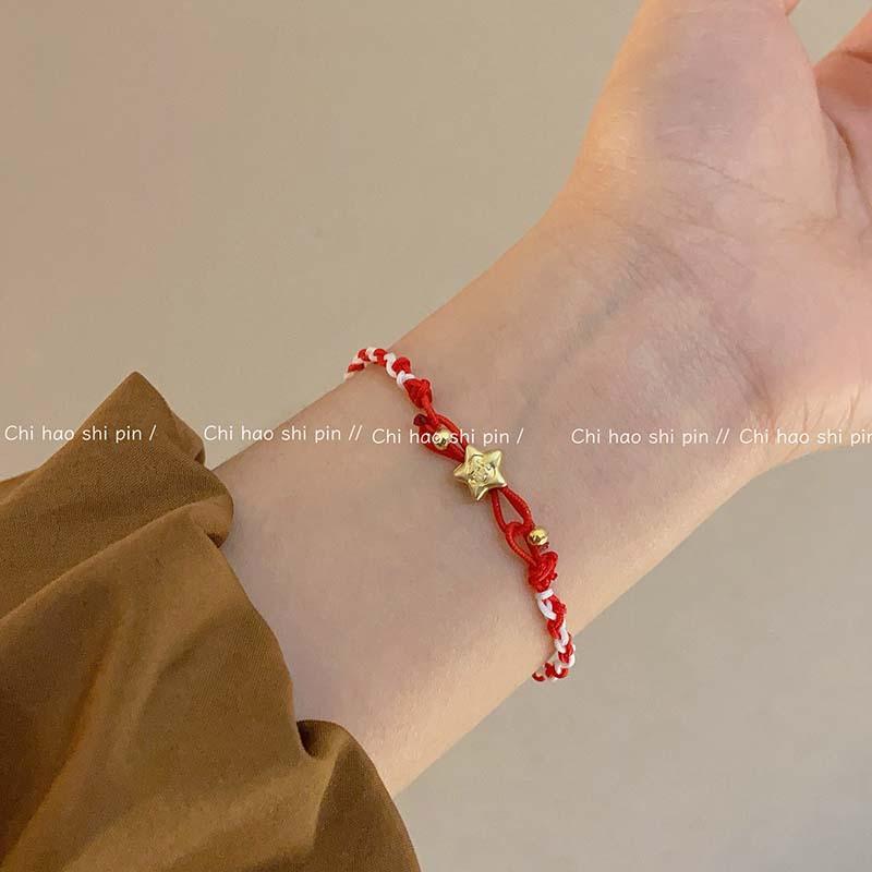 Pulsera de cuerda roja tejida a mano con lazo de estrella de estilo chino nuevo, diseño nicho simple, pulsera versátil de alto sentido
