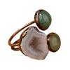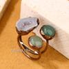 Anillo Abierto Ajustable de Estilo Retro con Combinación de Cueva de Ágata, Redondo de Dongling Verde, Soldado a Mano con Baño de Bronce