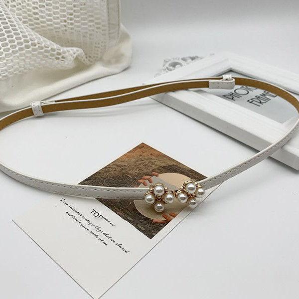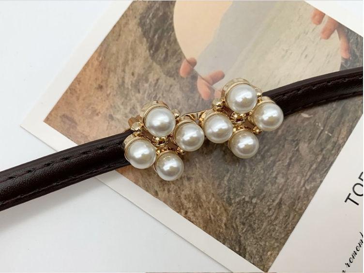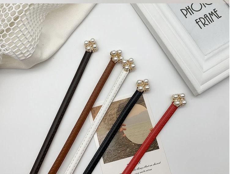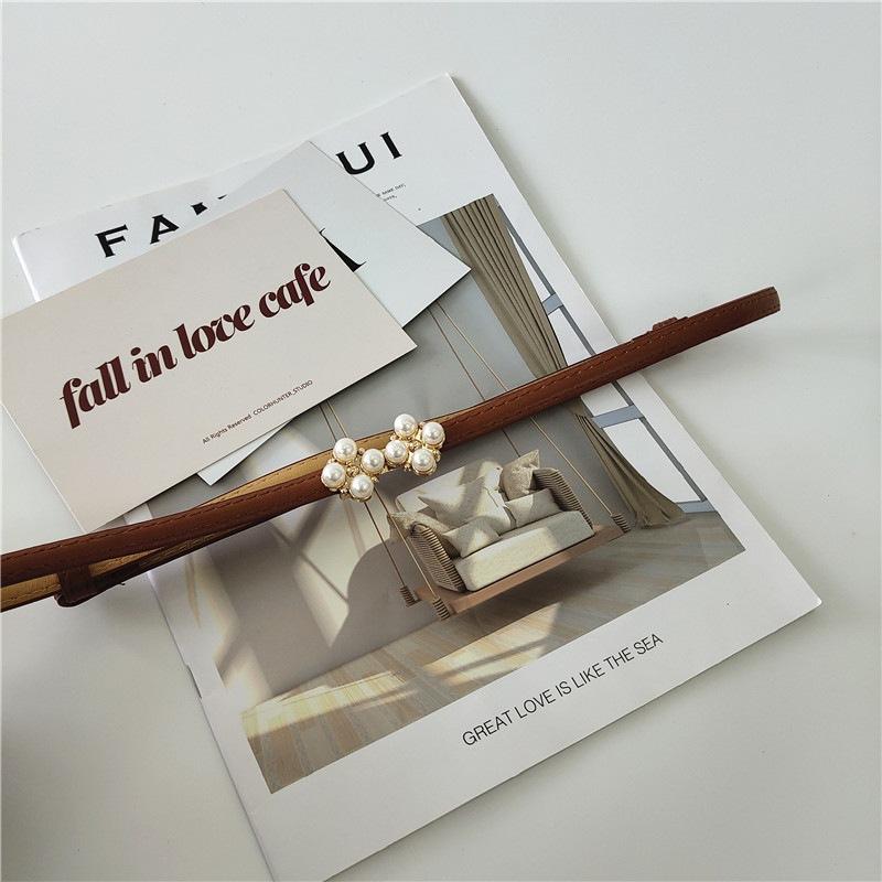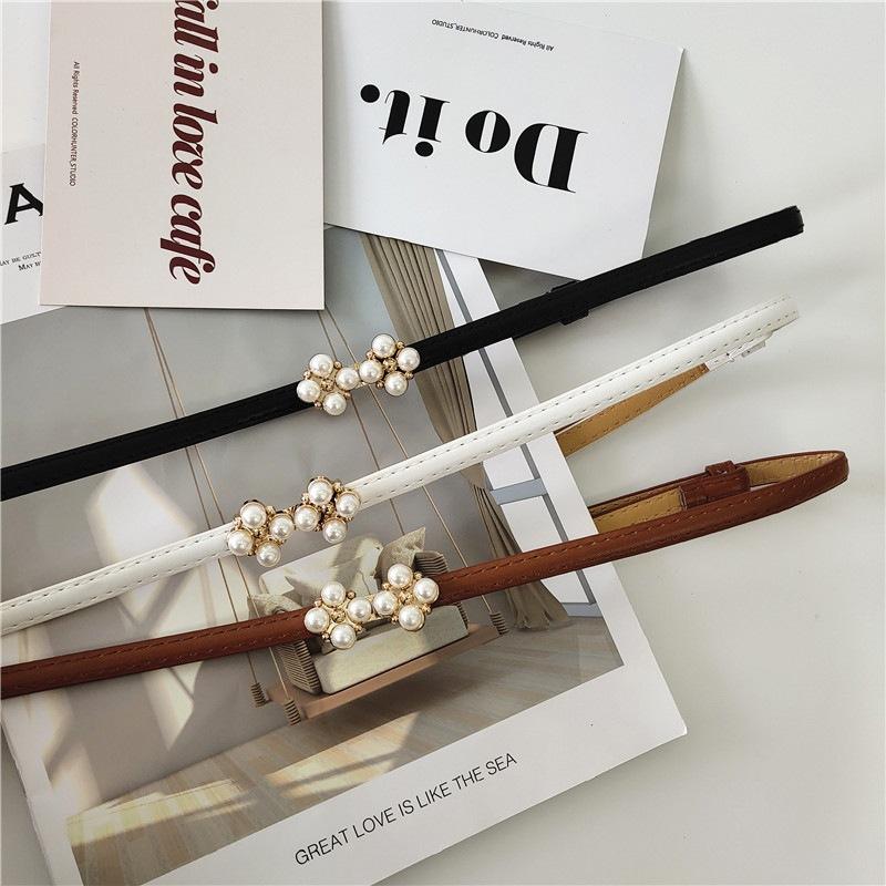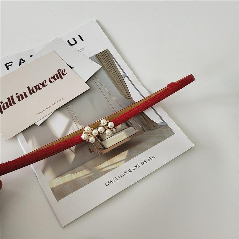 Cinturón de ajuste con hebilla de PU de trébol de cuatro hojas y perlas en la cintura